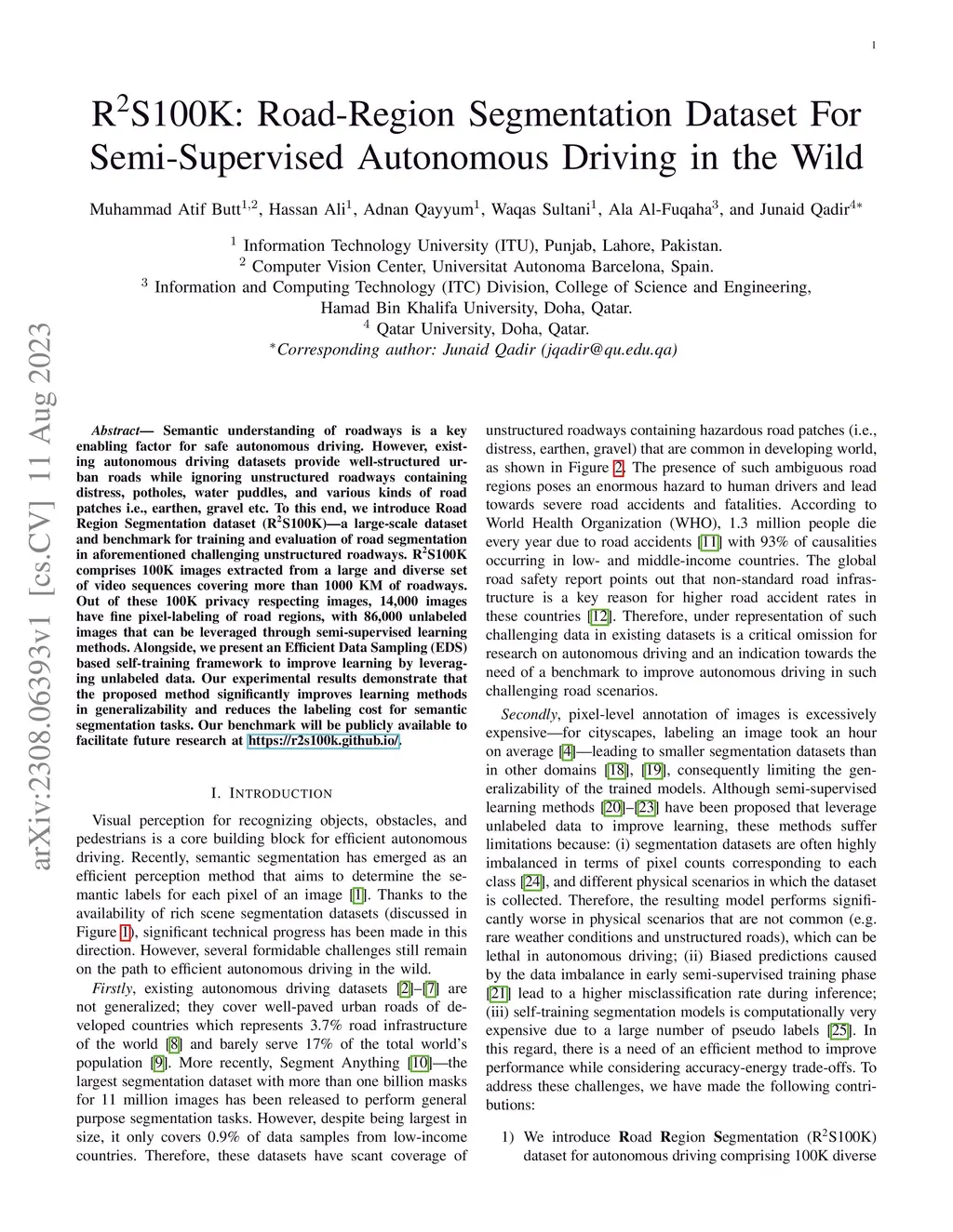 R2S100K: Road-Region Segmentation Dataset For Semi-Supervised Autonomous