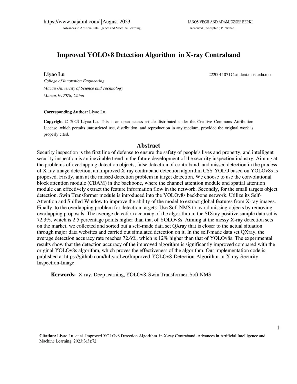 Security inspection is the first line of defense to ensure the safety of people's lives and property, and intelligent security inspection is an inevitable trend in the future development of the security inspection industry. Aiming at the problems of overlapping detection objects, false detection of contraband, and missed detection in the process of X-ray image detection, an improved X-ray contraband detection algorithm CSS-YOLO based on YOLOv8s is proposed.