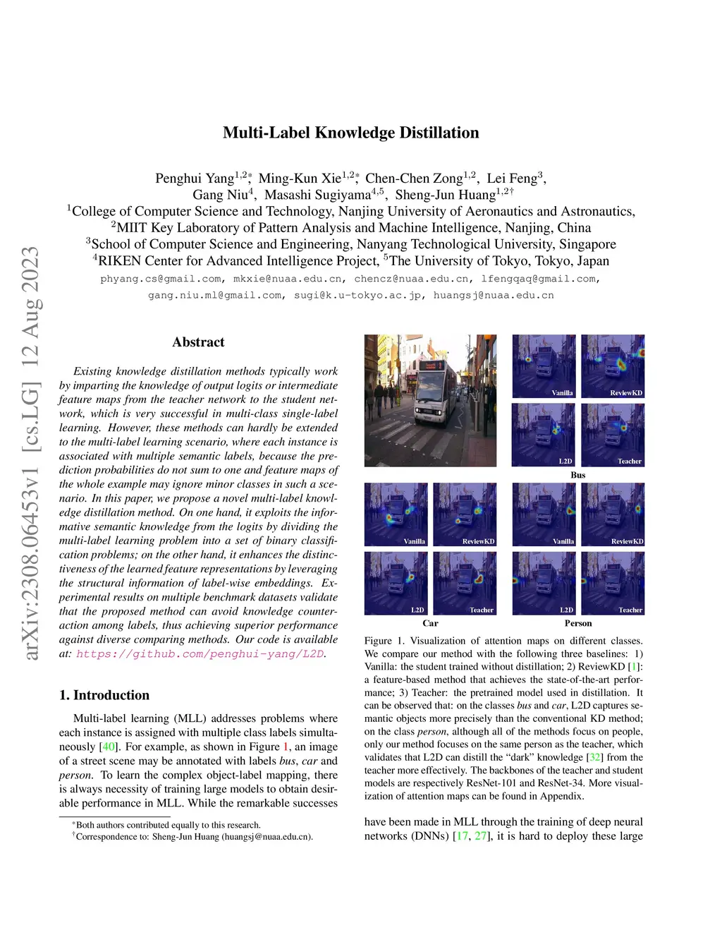 Existing knowledge distillation methods typically work by imparting the knowledge of output logits or intermediate feature maps from the teacher network to the student network, which is very successful in multi-class single-label learning. However, these methods can hardly be extended to the multi-label learning scenario, where each instance is associated with multiple semantic labels, because the prediction probabilities do not sum to one and feature maps of the whole example may ignore minor classes in such a scenario. In this paper, we propose a novel multi-label knowledge distillation method. On one hand, it exploits the informative semantic knowledge from the logits by dividing the multi-label learning problem into a set of binary classification problems; on the other hand, it enhances the distinctiveness of the learned feature representations by leveraging the structural information of label-wise embeddings. Experimental results on multiple benchmark datasets validate that the proposed method can avoid knowledge counteraction among labels, thus achieving superior performance against diverse comparing methods. Our code is available at: https://github.com/penghui-yang/L2D