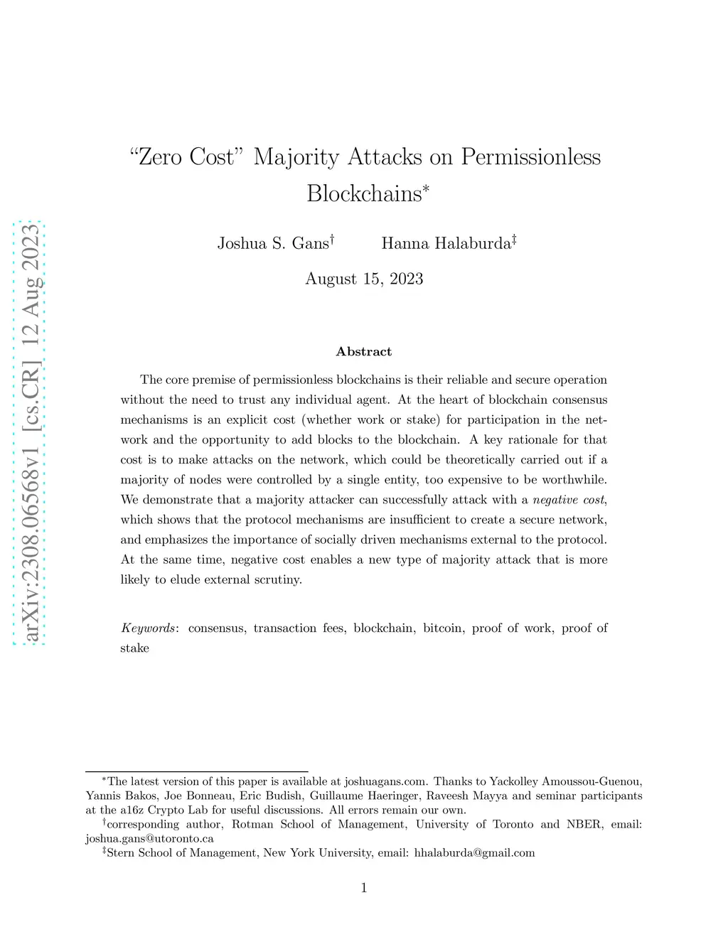 "Zero Cost'' Majority Attacks on Permissionless Blockchains