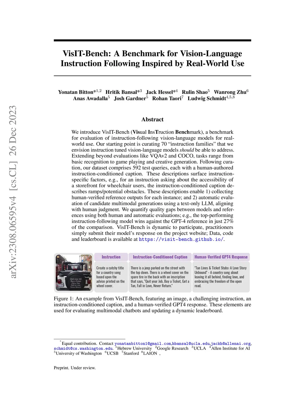 VisIT-Bench: A Benchmark for Vision-Language Instruction Following