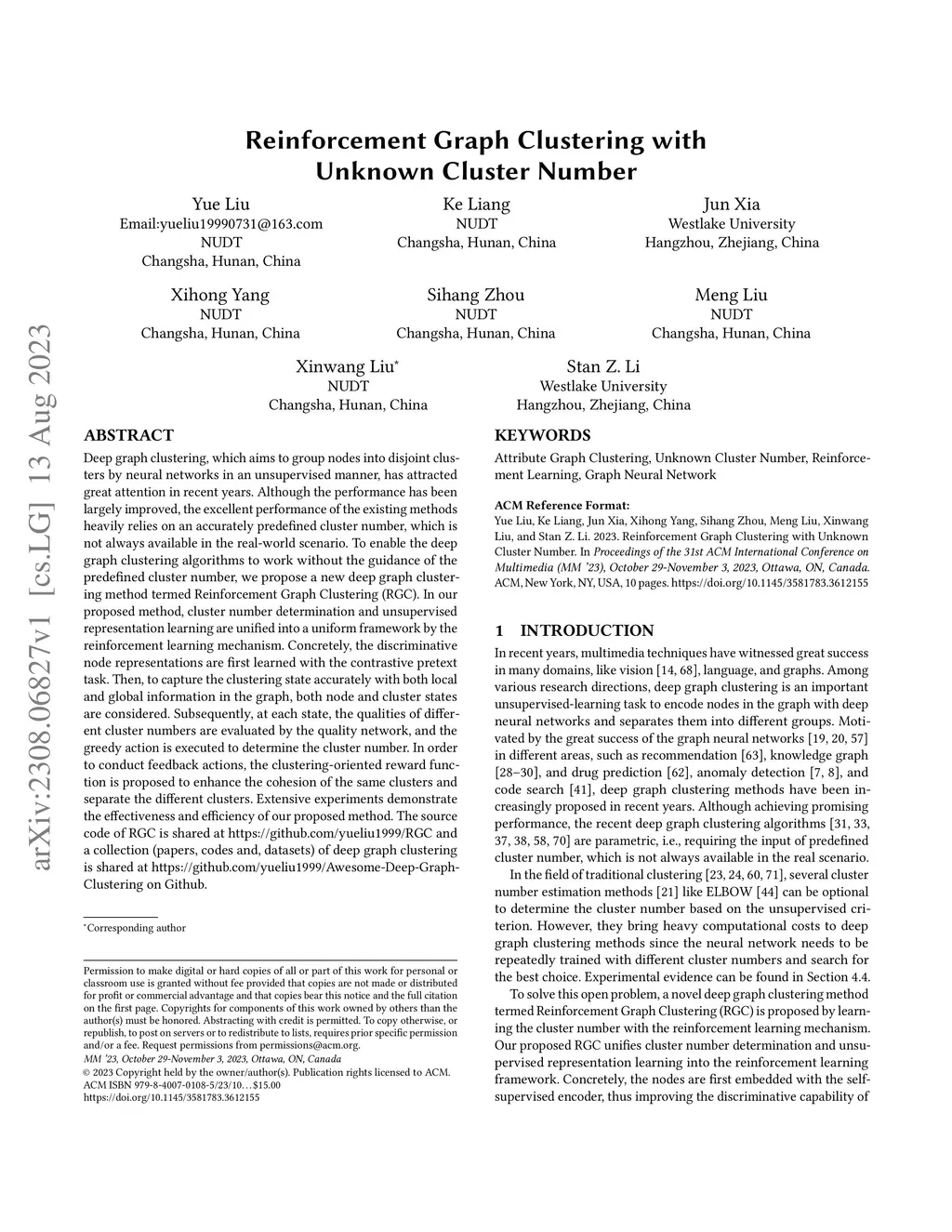 Reinforcement Graph Clustering with Unknown Cluster Number
