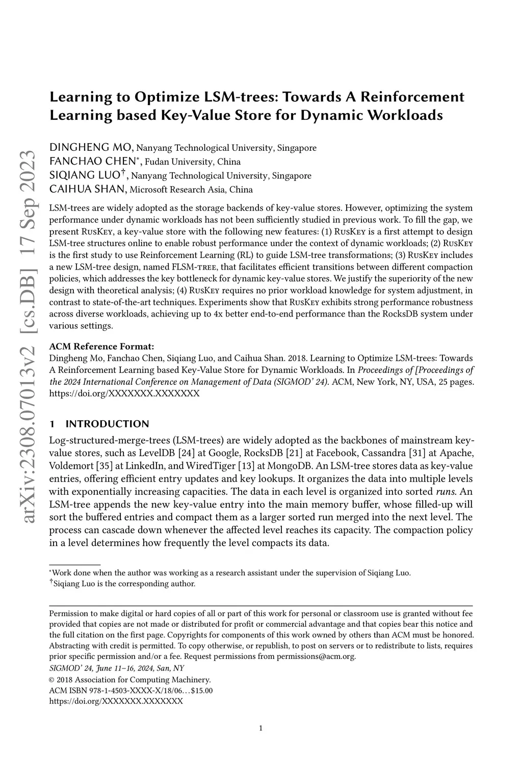 Learning to Optimize LSM-trees: Towards A Reinforcement Learning based