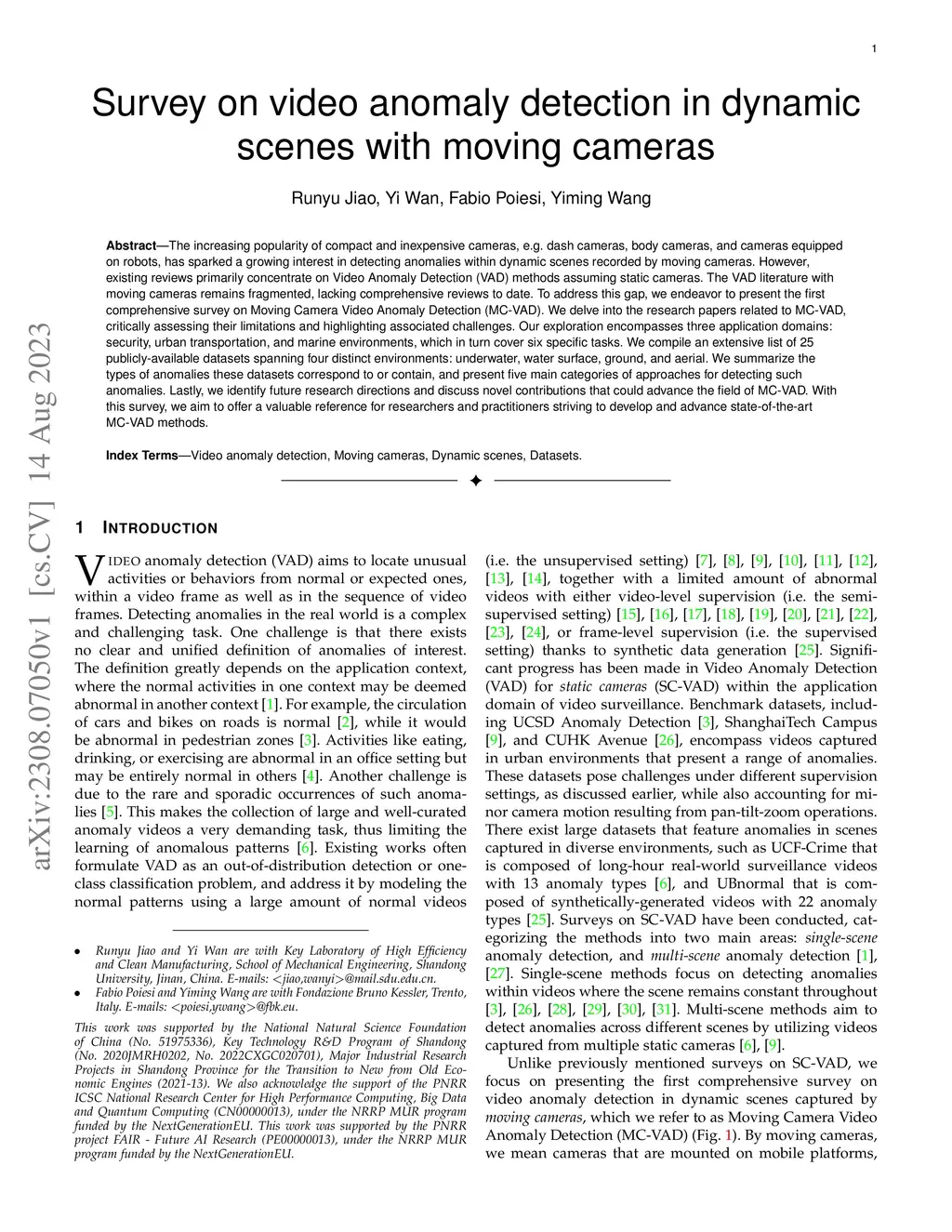 Survey on video anomaly detection in dynamic scenes with moving cameras