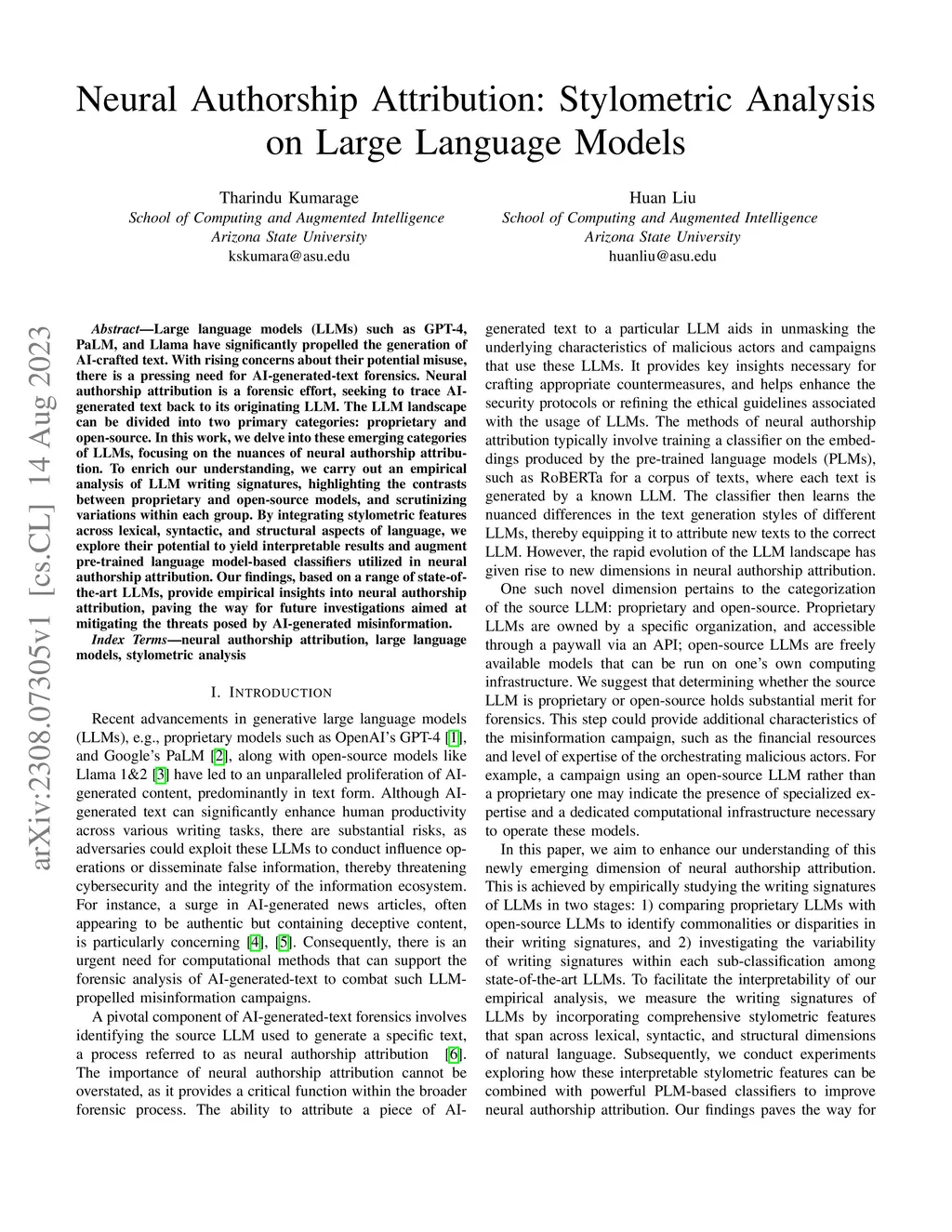 Neural Authorship Attribution: Stylometric Analysis on Large Language