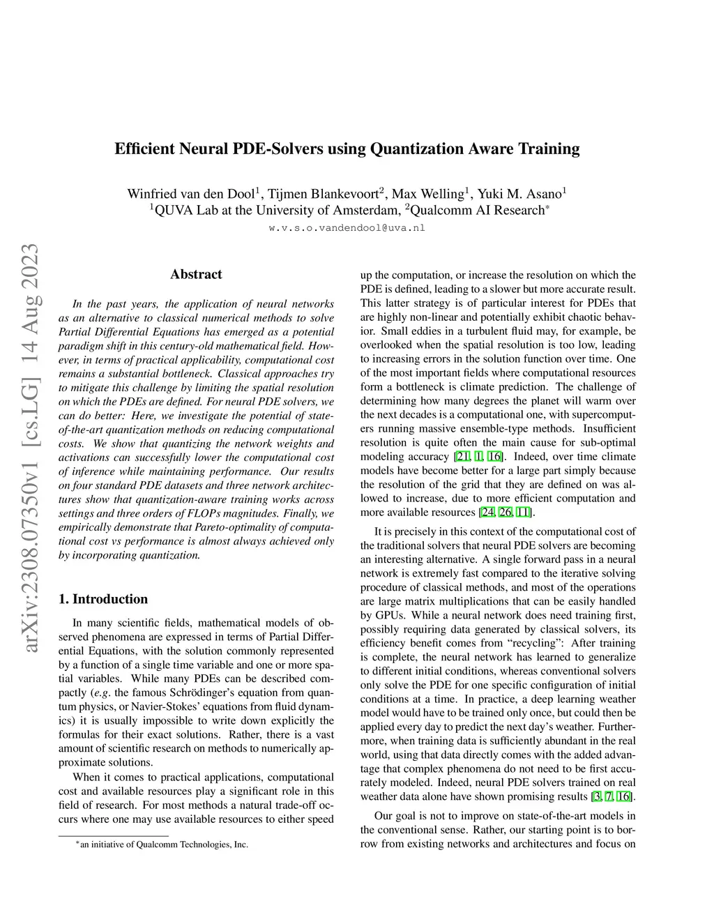 Efficient Neural PDE-Solvers using Quantization Aware Training