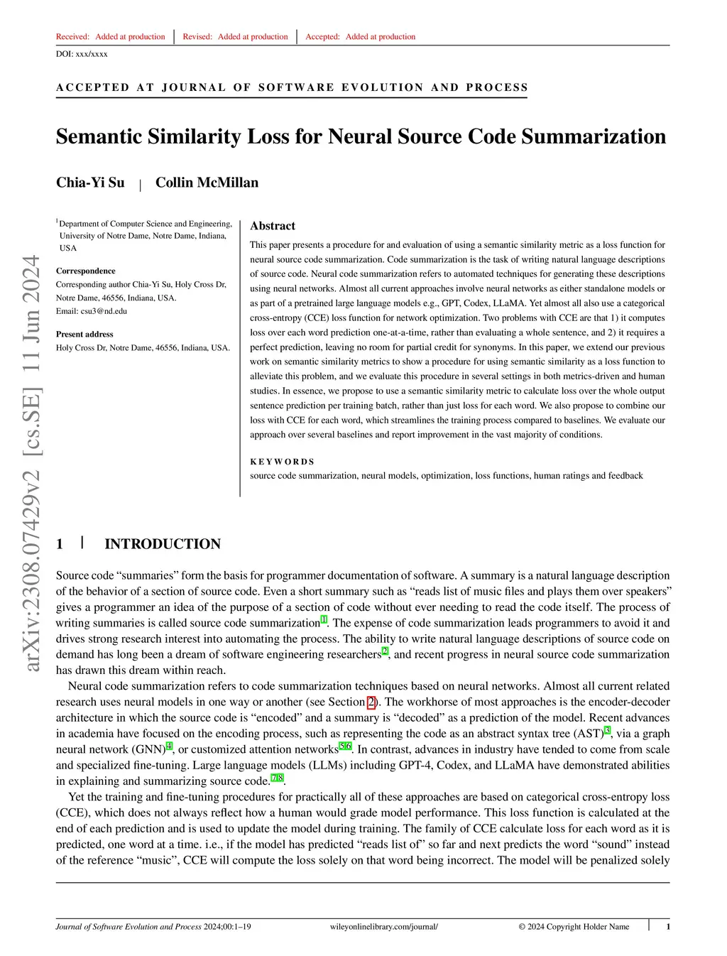 Semantic Similarity Loss for Neural Source Code Summarization
