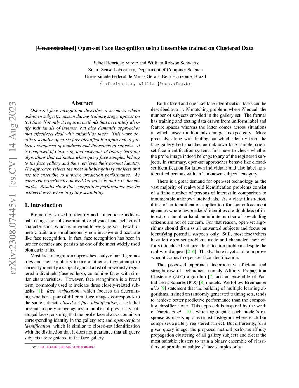 Open-set Face Recognition using Ensembles trained on Clustered Data