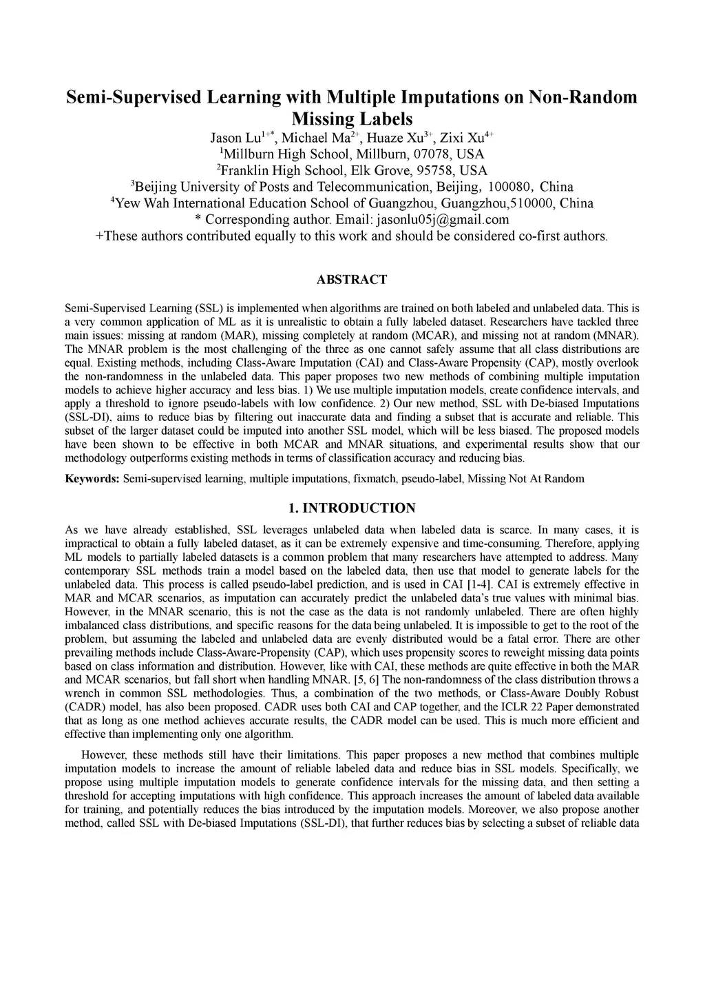 Semi-Supervised Learning (SSL) is implemented when algorithms are trained on both labeled and unlabeled data. This is a very common application of ML as it is unrealistic to obtain a fully labeled dataset. Researchers have tackled three main issues: missing at random (MAR), missing completely at random (MCAR), and missing not at random (MNAR). The MNAR problem is the most challenging of the three as one cannot safely assume that all class distributions are equal. Existing methods, including Class-Aware Imputation (CAI) and Class-Aware Propensity (CAP), mostly overlook the non-randomness in the unlabeled data. This paper proposes two new methods of combining multiple imputation models to achieve higher accuracy and less bias. 1) We use multiple imputation models, create confidence intervals, and apply a threshold to ignore pseudo-labels with low confidence. 2) Our new method, SSL with De-biased Imputations (SSL-DI), aims to reduce bias by filtering out inaccurate data and finding a subset that is accurate and reliable. This subset of the larger dataset could be imputed into another SSL model, which will be less biased. The proposed models have been shown to be effective in both MCAR and MNAR situations, and experimental results show that our methodology outperforms existing methods in terms of classification accuracy and reducing bias.