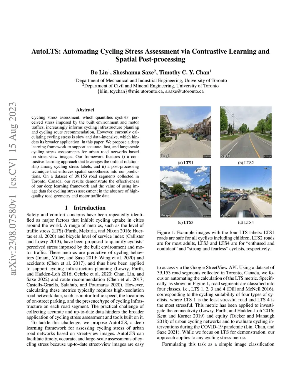 AutoLTS: Automating Cycling Stress Assessment via Contrastive Learning