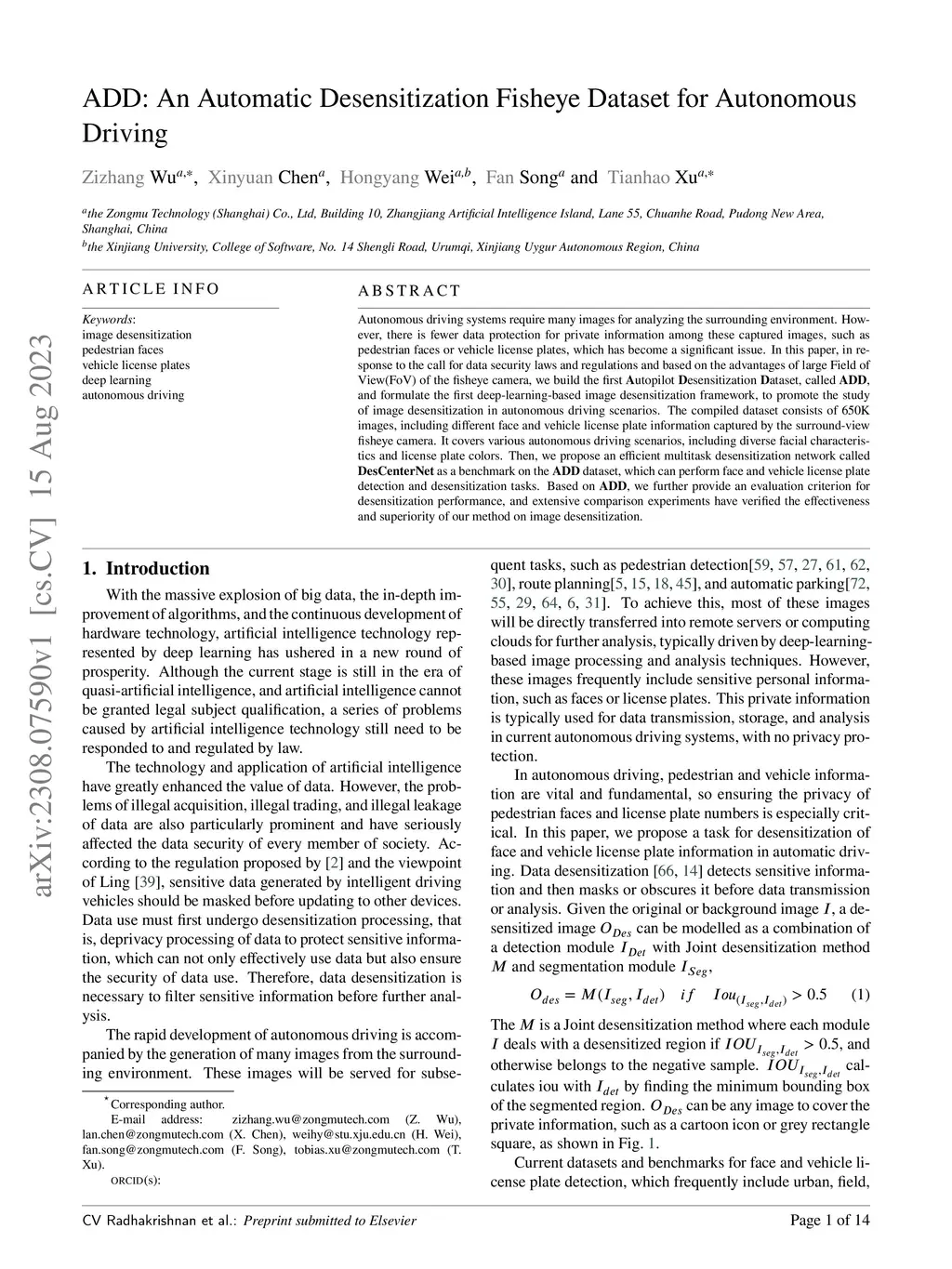 ADD: An Automatic Desensitization Fisheye Dataset for Autonomous Driving