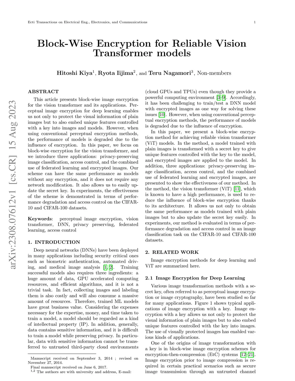 This article presents block-wise image encryption for the vision transformer and its applications. Perceptual image encryption for deep learning enables us not only to protect the visual information of plain images but to also embed unique features controlled with a key into images and models. However, when using conventional perceptual encryption methods, the performance of models is degraded due to the influence of encryption. In this paper, we focus on block-wise encryption for the vision transformer, and we introduce three applications: privacy-preserving image classification, access control, and the combined use of federated learning and encrypted images. Our scheme can have the same performance as models without any encryption, and it does not require any network modification. It also allows us to easily update the secret key. In experiments, the effectiveness of the scheme is demonstrated in terms of performance degradation and access control on the CIFAR10 and CIFAR-100 datasets.