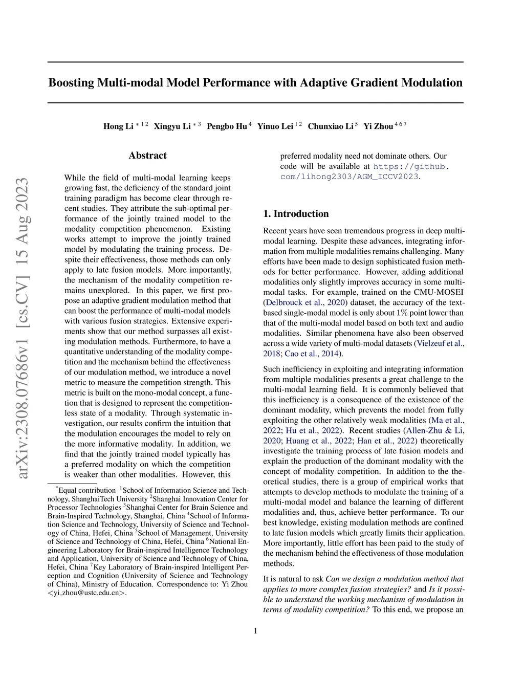 While the field of multi-modal learning keeps growing fast, the deficiency of the standard joint training paradigm has become clear through recent studies. They attribute the sub-optimal performance of the jointly trained model to the modality competition phenomenon. Existing works attempt to improve the jointly trained model by modulating the training process. Despite their effectiveness, those methods can only apply to late fusion models. More importantly, the mechanism of the modality competition remains unexplored. In this paper, we first propose an adaptive gradient modulation method that can boost the performance of multi-modal models with various fusion strategies. Extensive experiments show that our method surpasses all existing modulation methods. Furthermore, to have a quantitative understanding of the modality competition and the mechanism behind the effectiveness of our modulation method, we introduce a novel metric to measure the competition strength. This metric is built on the mono-modal concept, a function that is designed to represent the competition-less state of a modality. Through systematic investigation, our results confirm the intuition that the modulation encourages the model to rely on the more informative modality. In addition, we find that the jointly trained model typically has a preferred modality on which the competition is weaker than other modalities. However, this preferred modality need not dominate others. Our code will be available at https://github.com/lihong2303/AGM_ICCV2023.