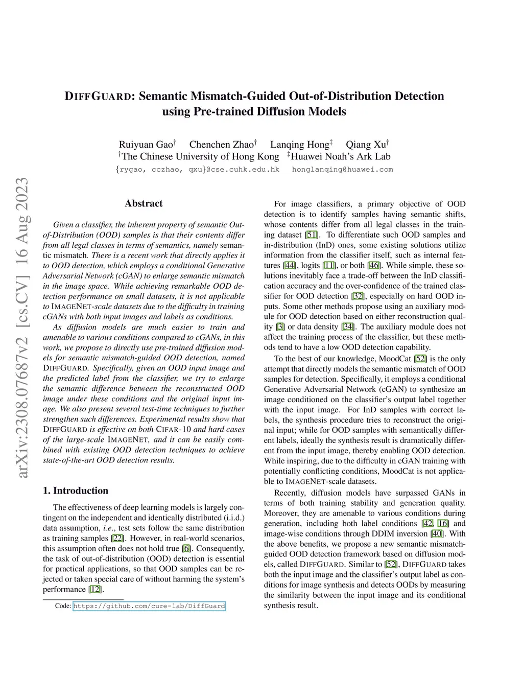 DiffGuard: Semantic Mismatch-Guided Out-of-Distribution Detection using
