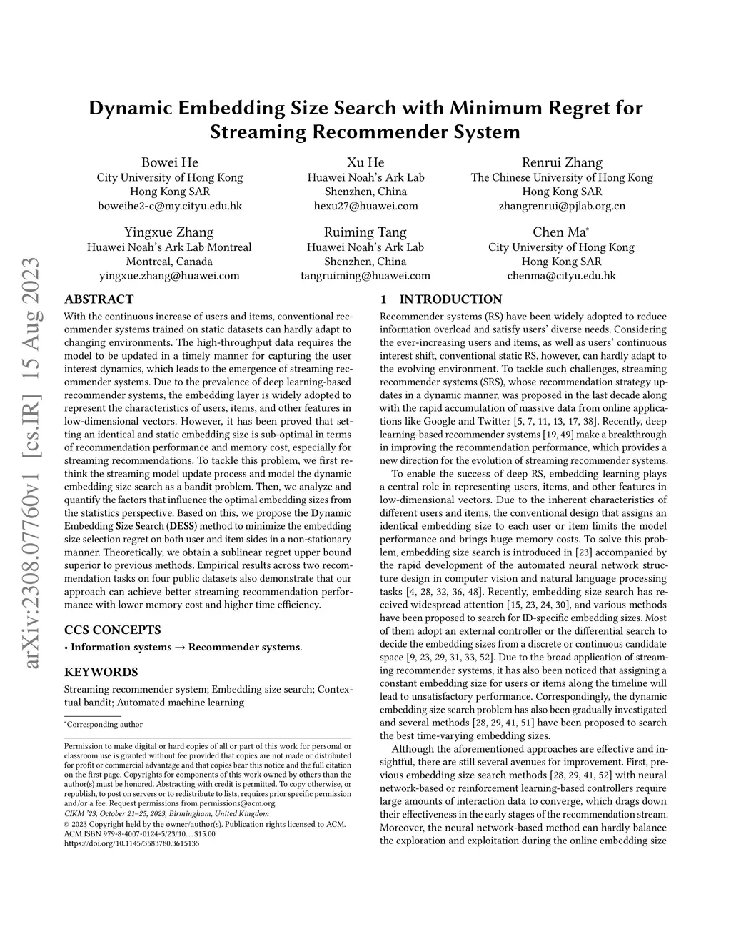 Dynamic Embedding Size Search with Minimum Regret for Streaming
