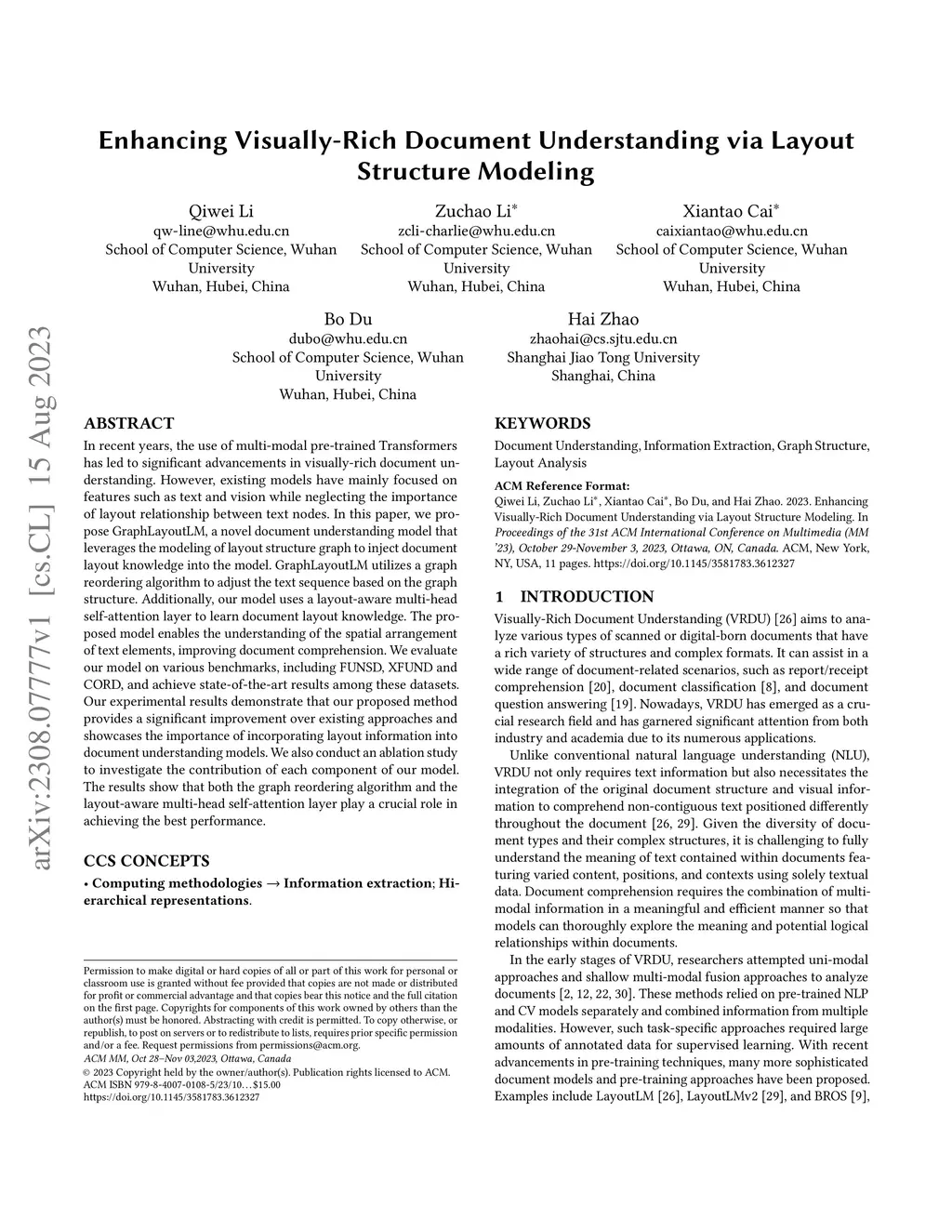 Enhancing Visually-Rich Document Understanding via Layout Structure