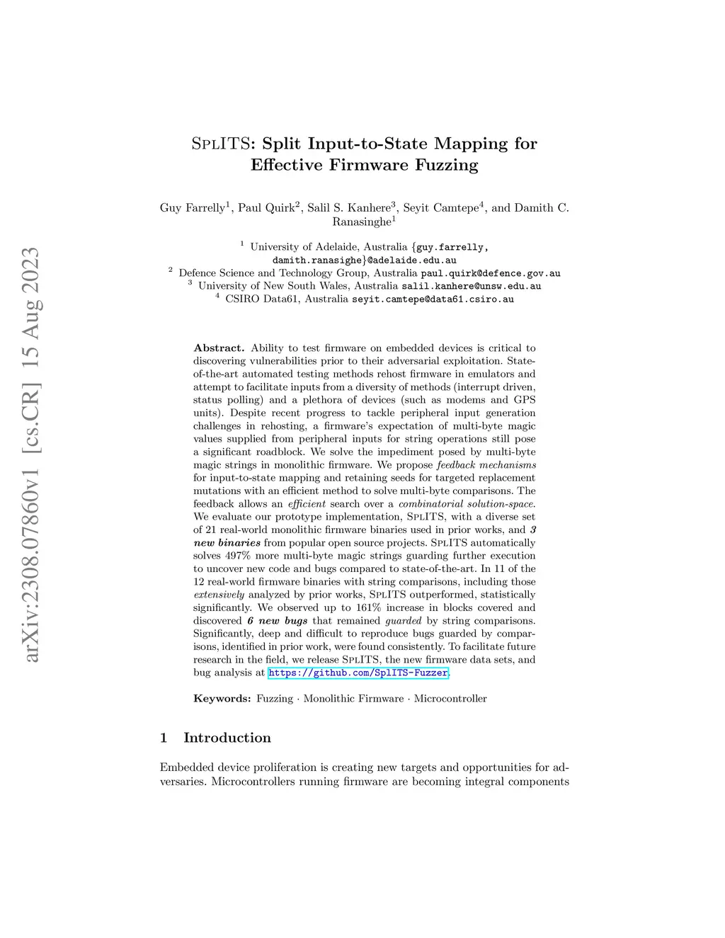 SplITS: Split Input-to-State Mapping for Effective Firmware Fuzzing