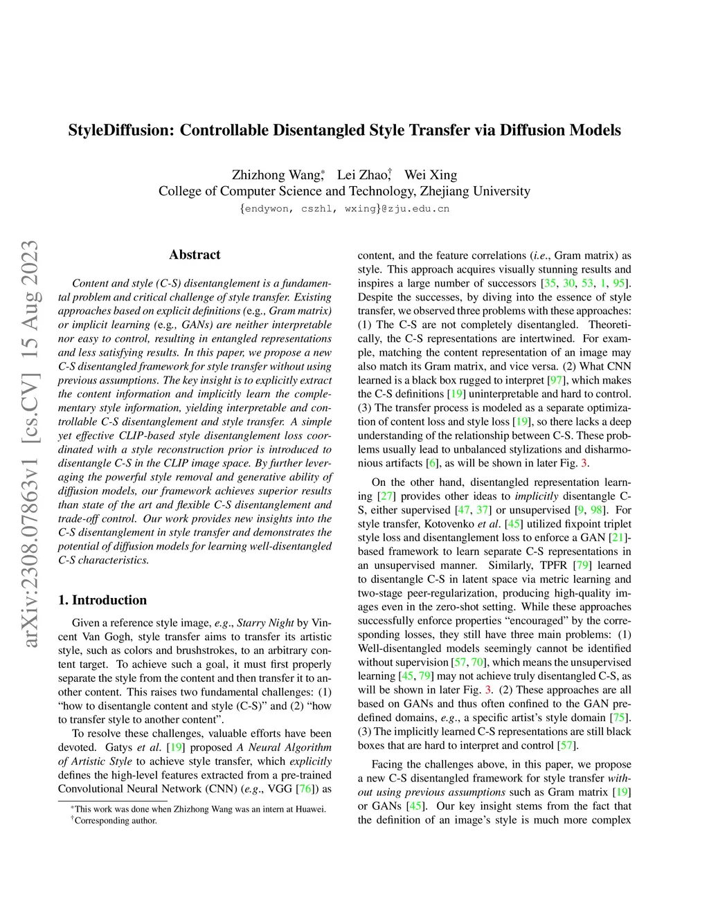 StyleDiffusion: Controllable Disentangled Style Transfer via Diffusion