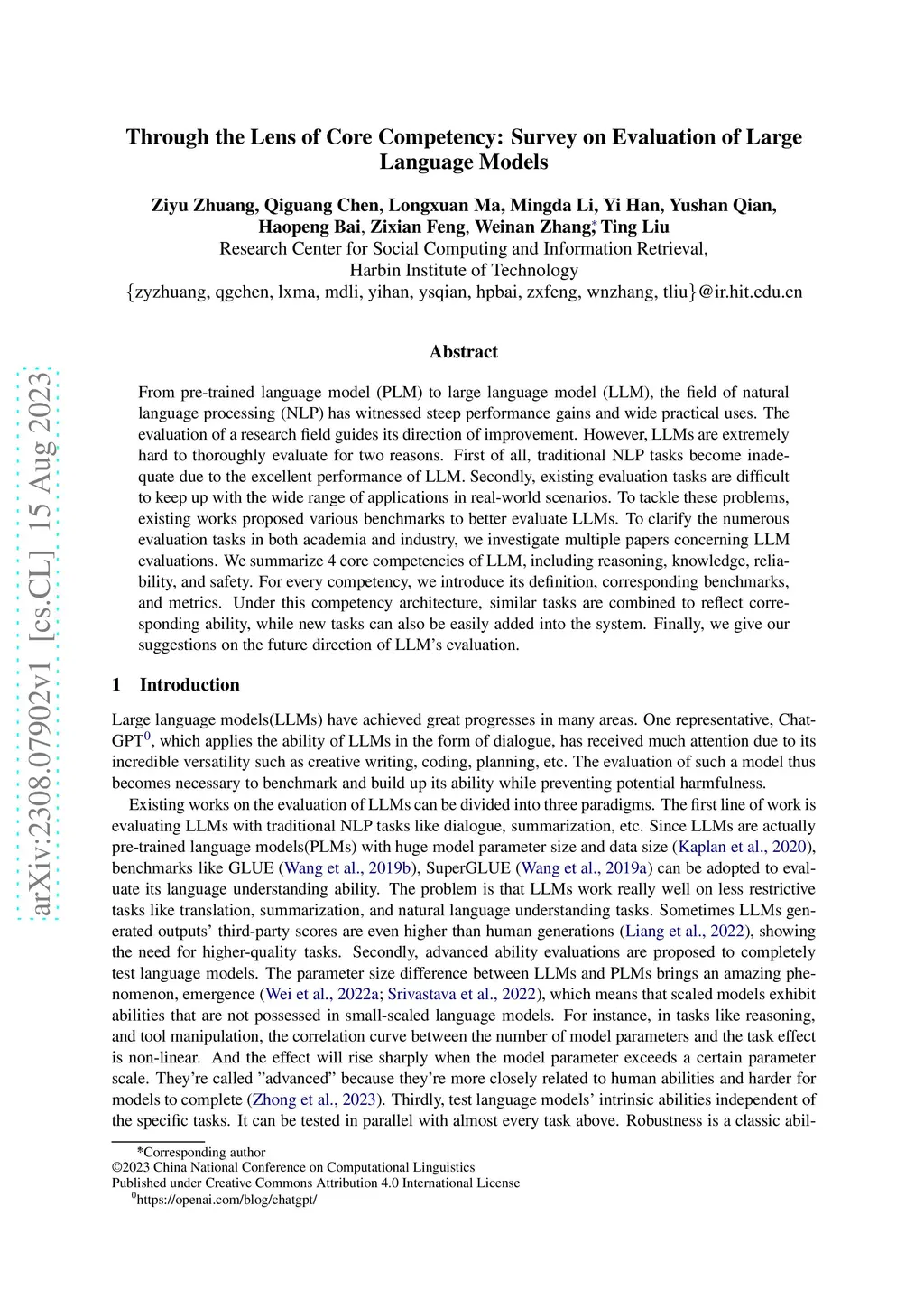 Through the Lens of Core Competency: Survey on Evaluation of Large