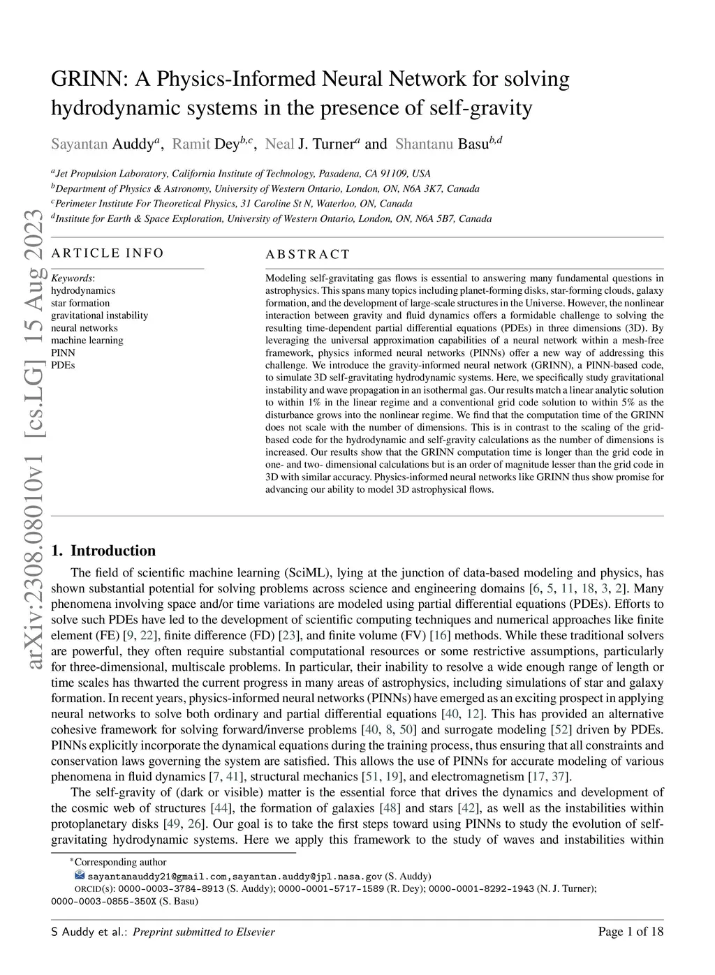 GRINN: A Physics-Informed Neural Network for solving hydrodynamic
