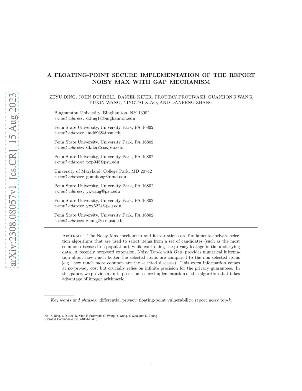 A Floating-Point Secure Implementation of the Report Noisy Max with Gap