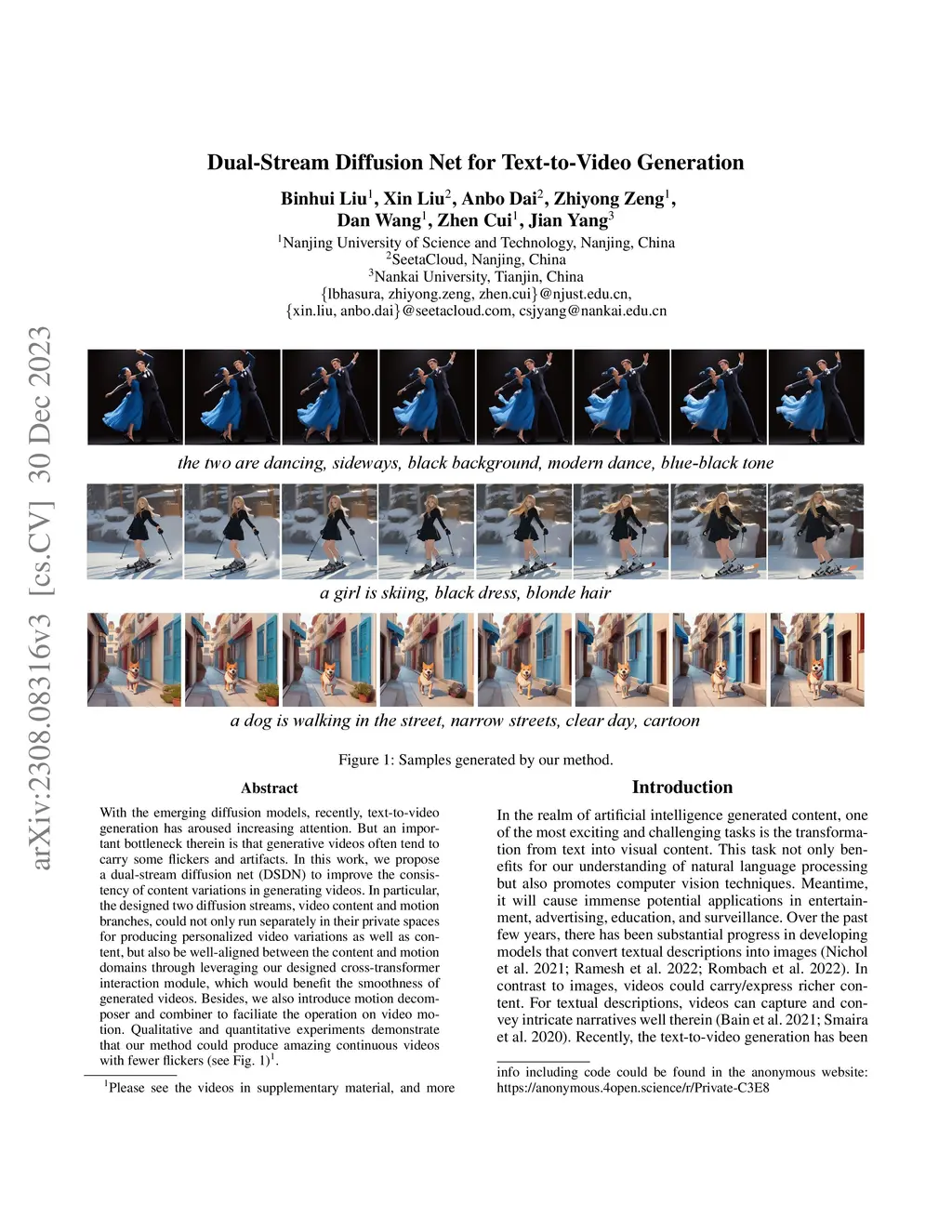 Dual-Stream Diffusion Net for Text-to-Video Generation