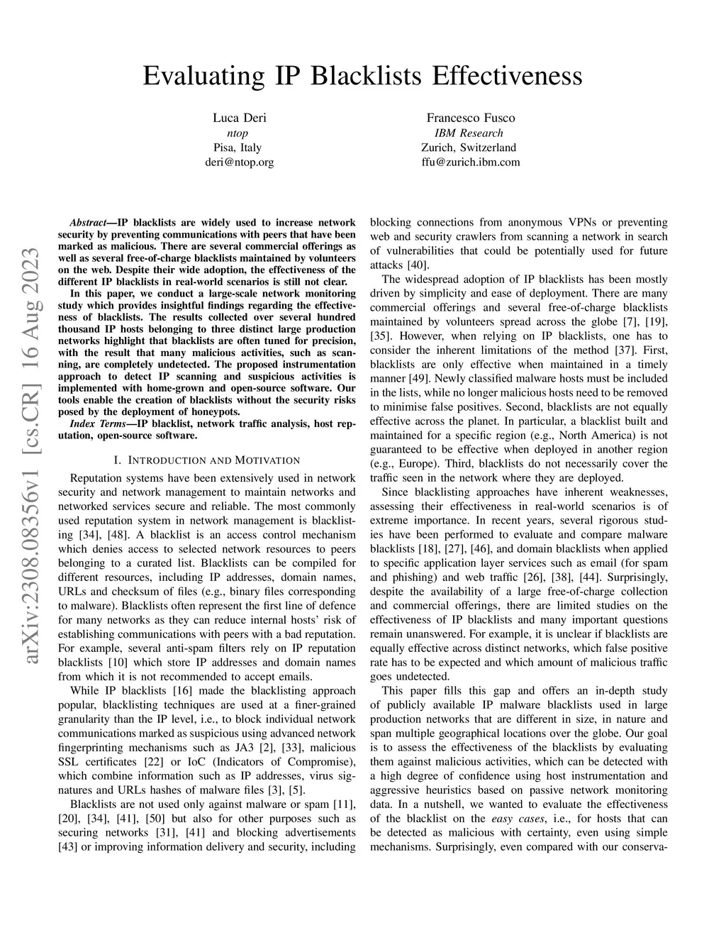 IP blacklists are widely used to increase network security by preventing communications with peers that have been marked as malicious. There are several commercial offerings as well as several free-of-charge blacklists maintained by volunteers on the web. Despite their wide adoption, the effectiveness of the different IP blacklists in real-world scenarios is still not clear. In this paper, we conduct a large-scale network monitoring study which provides insightful findings regarding the effectiveness of blacklists. The results collected over several hundred thousand IP hosts belonging to three distinct large production networks highlight that blacklists are often tuned for precision, with the result that many malicious activities, such as scanning, are completely undetected. The proposed instrumentation approach to detect IP scanning and suspicious activities is implemented with home-grown and open-source software. Our tools enable the creation of blacklists without the security risks posed by the deployment of honeypots.