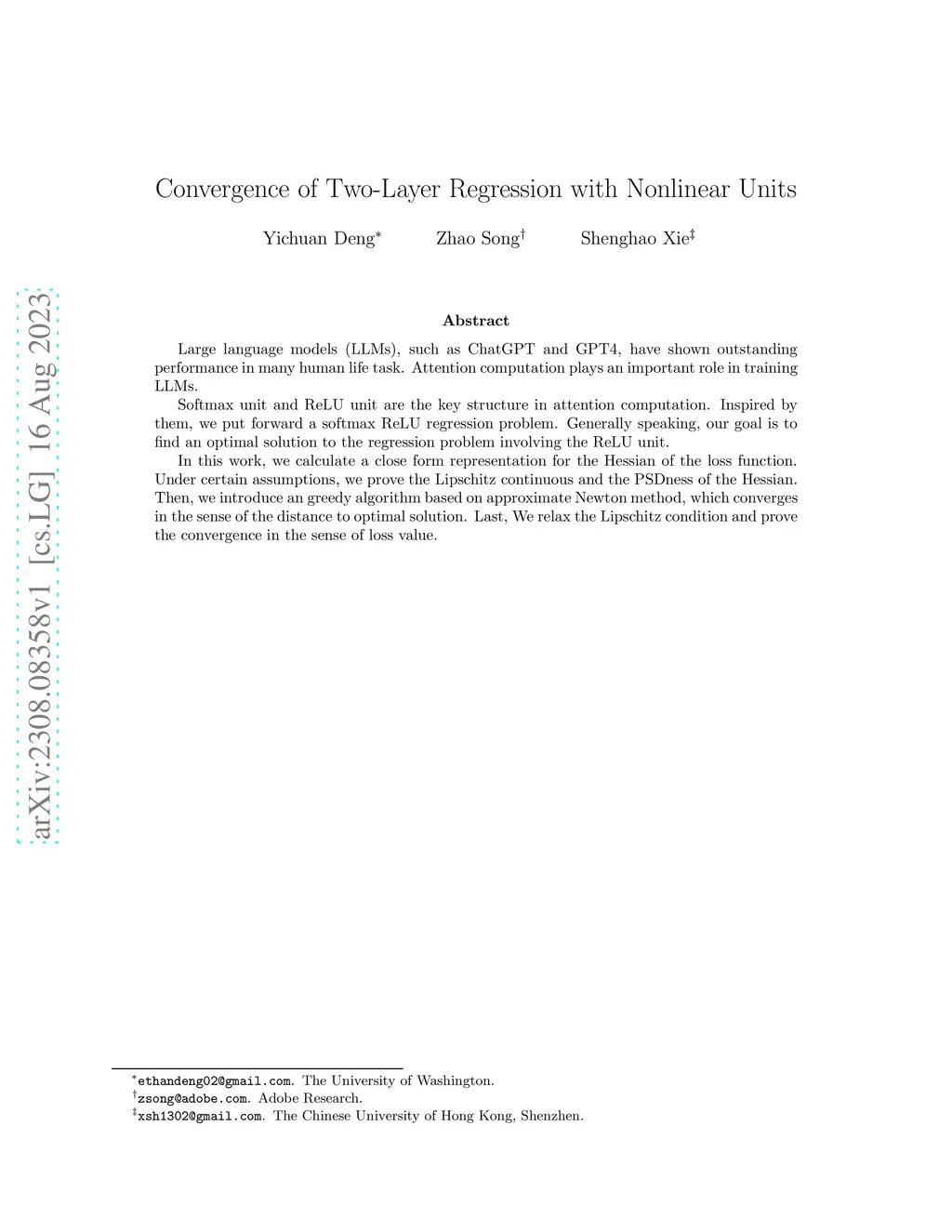 Large language models (LLMs), such as ChatGPT and GPT4, have shown outstanding performance in many human life task. Attention computation plays an important role in training LLMs. Softmax unit and ReLU unit are the key structure in attention computation. Inspired by them, we put forward a softmax ReLU regression problem. Generally speaking, our goal is to find an optimal solution to the regression problem involving the ReLU unit. In this work, we calculate a close form representation for the Hessian of the loss function. Under certain assumptions, we prove the Lipschitz continuous and the PSDness of the Hessian. Then, we introduce an greedy algorithm based on approximate Newton method, which converges in the sense of the distance to optimal solution. Last, We relax the Lipschitz condition and prove the convergence in the sense of loss value.