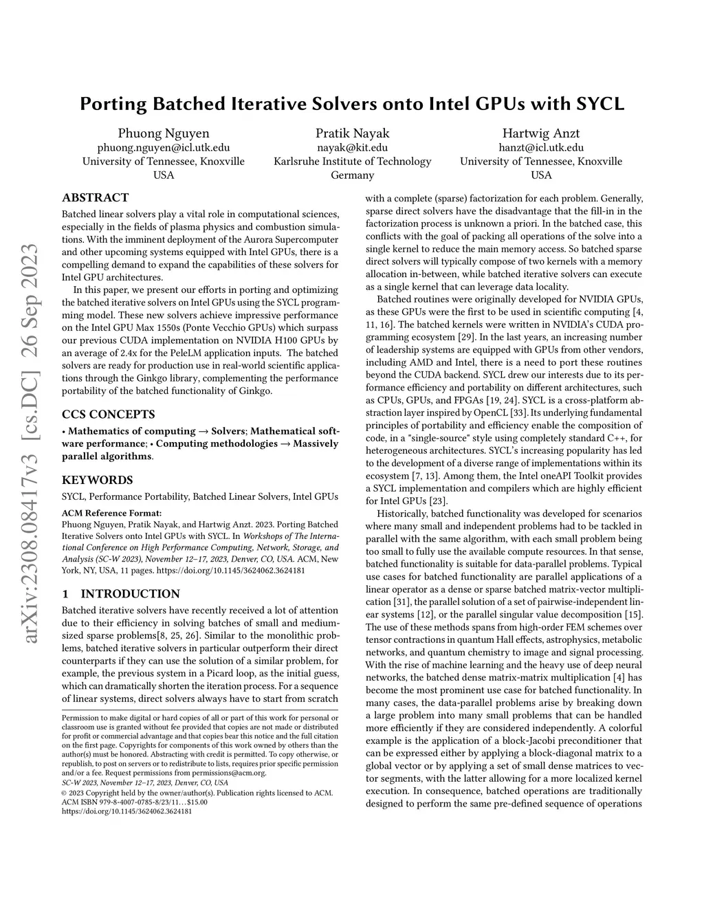 Porting Batched Iterative Solvers onto Intel GPUs with SYCL