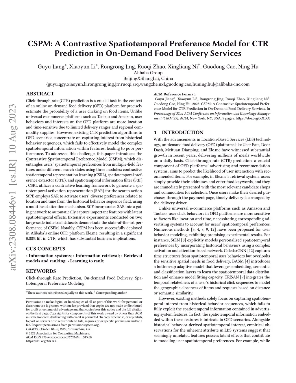 CSPM: A Contrastive Spatiotemporal Preference Model for CTR Prediction
