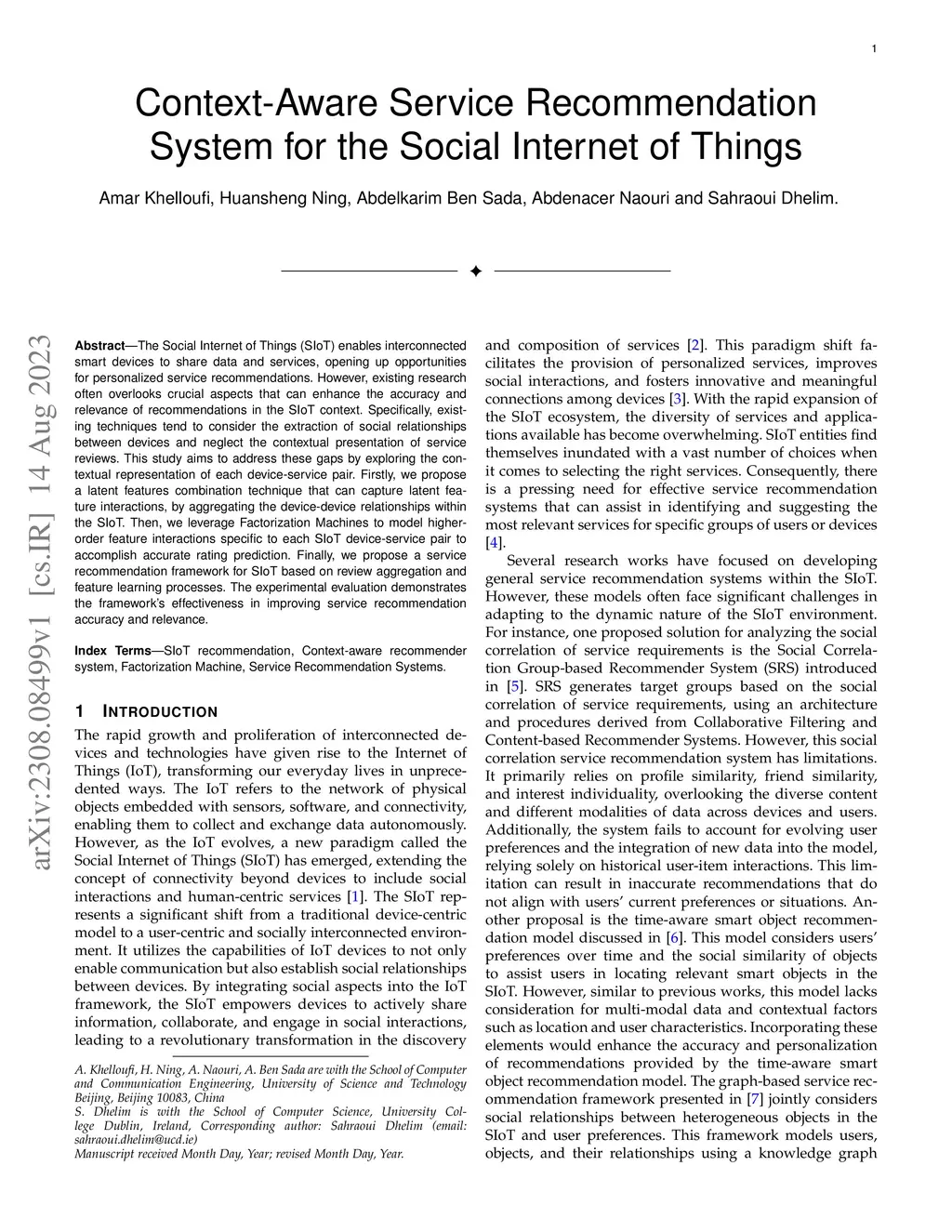 Context-Aware Service Recommendation System for the Social Internet of