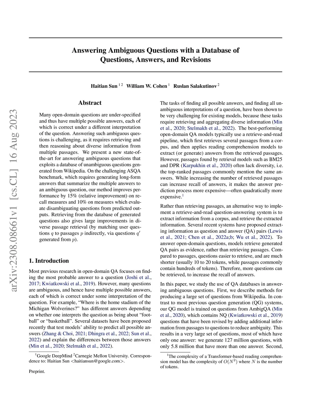 Answering Ambiguous Questions with a Database of Questions, Answers, and