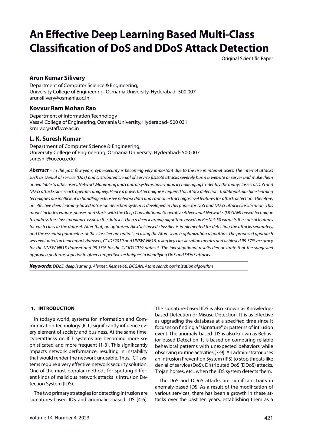 An Effective Deep Learning Based Multi-Class Classification of DoS and