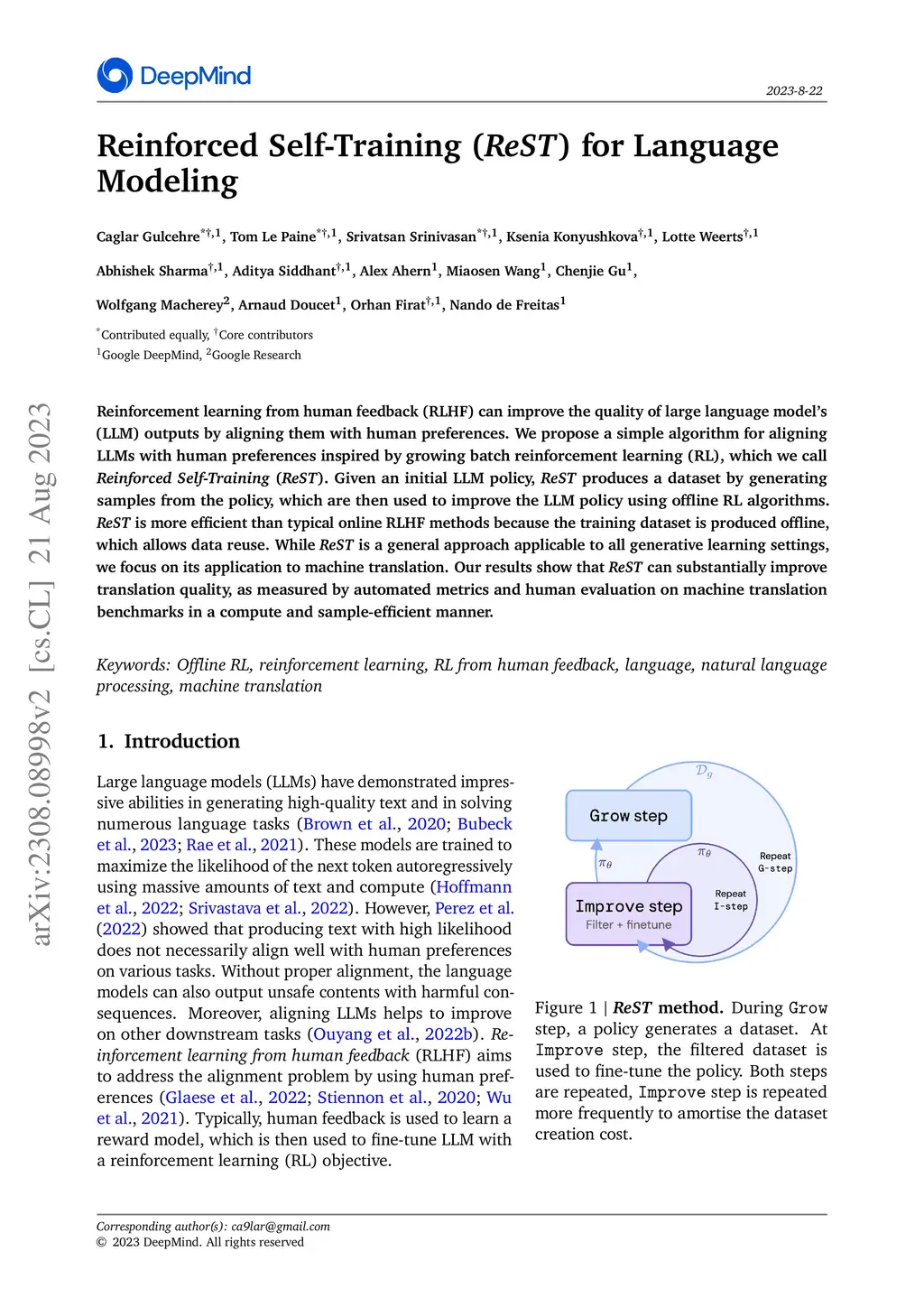 Reinforced Self-Training (ReST) for Language Modeling