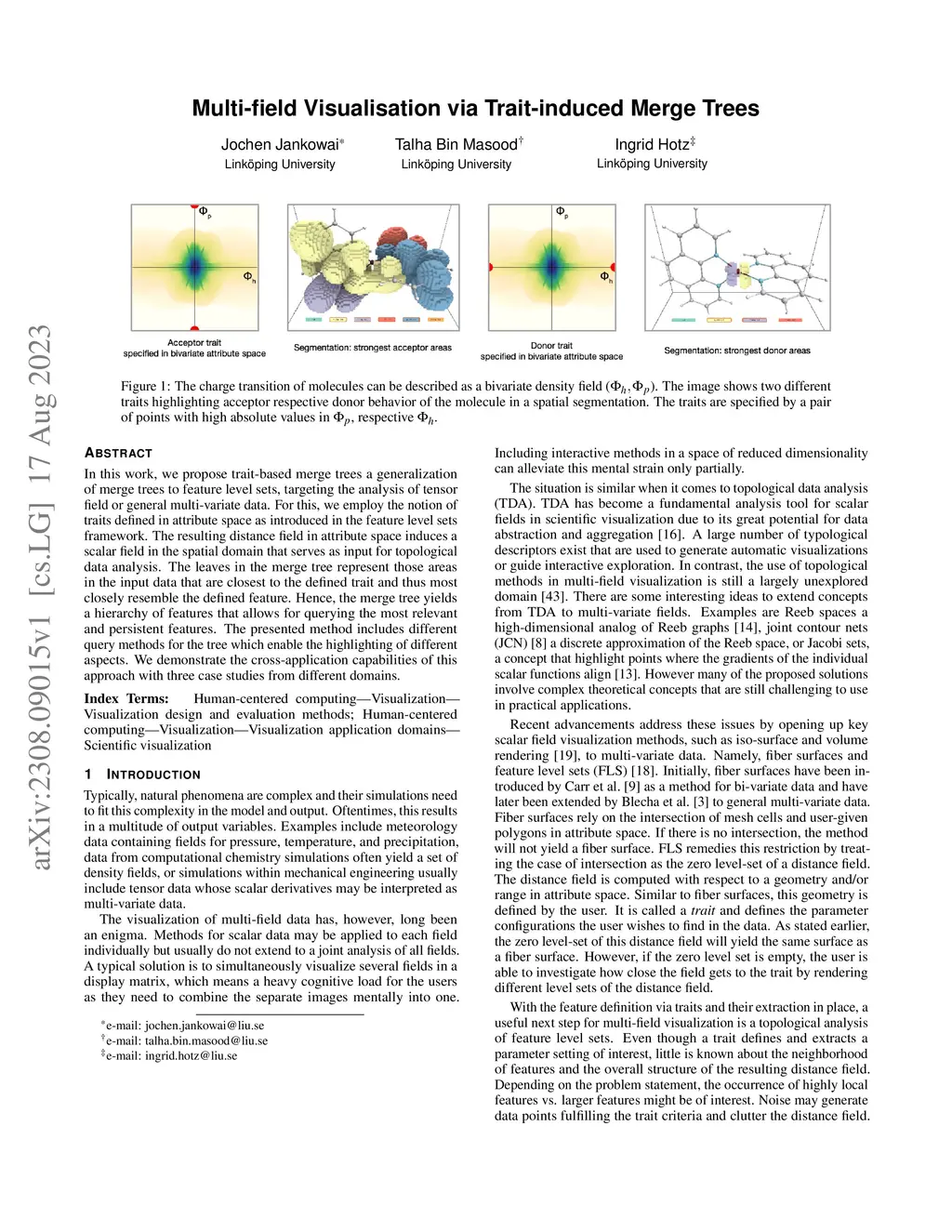 Multi-field Visualisation via Trait-induced Merge Trees