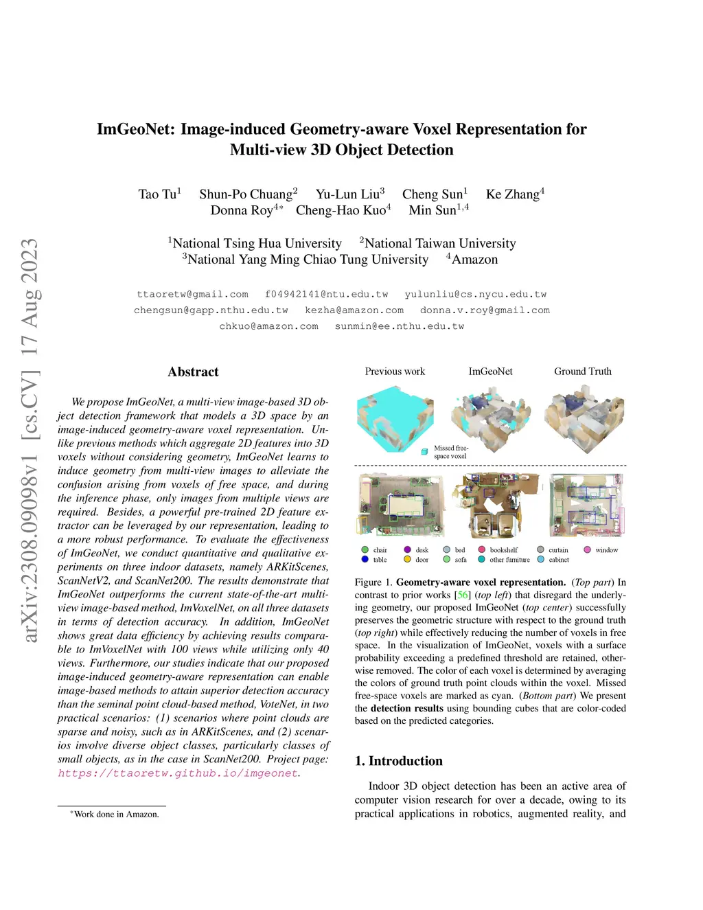 We propose ImGeoNet, a multi-view image-based 3D object detection framework that models a 3D space by an image-induced geometry-aware voxel representation. Unlike previous methods which aggregate 2D features into 3D voxels without considering geometry, ImGeoNet learns to induce geometry from multi-view images to alleviate the confusion arising from voxels of free space, and during the inference phase, only images from multiple views are required. Besides, a powerful pre-trained 2D feature extractor can be leveraged by our representation, leading to a more robust performance. To evaluate the effectiveness of ImGeoNet, we conduct quantitative and qualitative experiments on three indoor datasets, namely ARKitScenes, ScanNetV2, and ScanNet200. The results demonstrate that ImGeoNet outperforms the current state-of-the-art multi-view image-based method, ImVoxelNet, on all three datasets in terms of detection accuracy. In addition, ImGeoNet shows great data efficiency by achieving results comparable to ImVoxelNet with 100 views while utilizing only 40 views. Furthermore, our studies indicate that our proposed image-induced geometry-aware representation can enable image-based methods to attain superior detection accuracy than the seminal point cloud-based method, VoteNet, in two practical scenarios: (1) scenarios where point clouds are sparse and noisy, such as in ARKitScenes, and (2) scenarios involve diverse object classes, particularly classes of small objects, as in the case in ScanNet200.