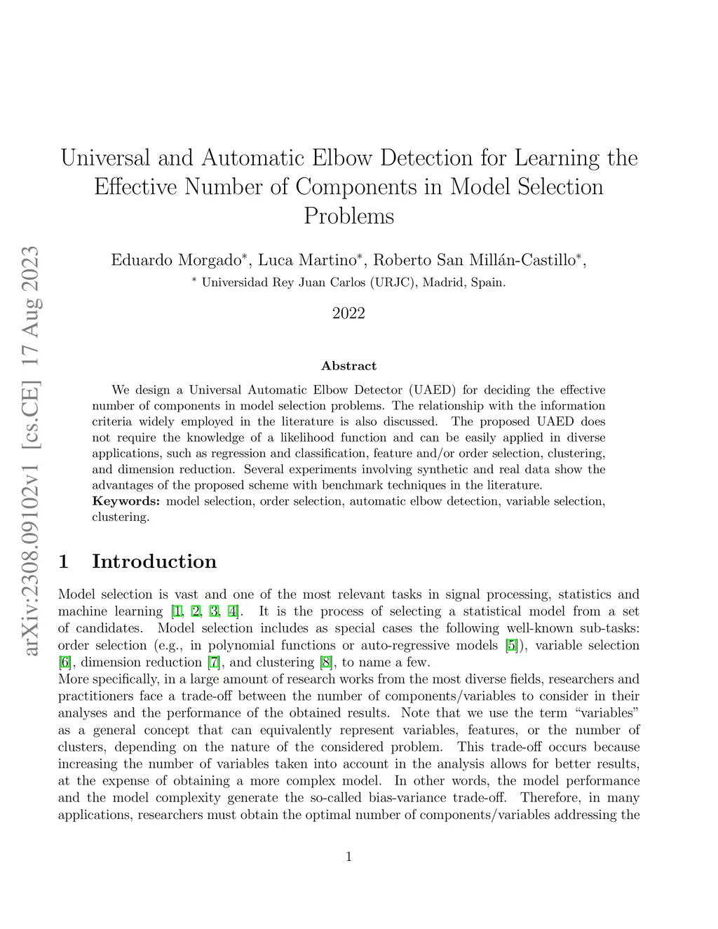 We design a Universal Automatic Elbow Detector (UAED) for deciding the effective number of components in model selection problems. The relationship with the information criteria widely employed in the literature is also discussed. The proposed UAED does not require the knowledge of a likelihood function and can be easily applied in diverse applications, such as regression and classification, feature and/or order selection, clustering, and dimension reduction. Several experiments involving synthetic and real data show the advantages of the proposed scheme with benchmark techniques in the literature.