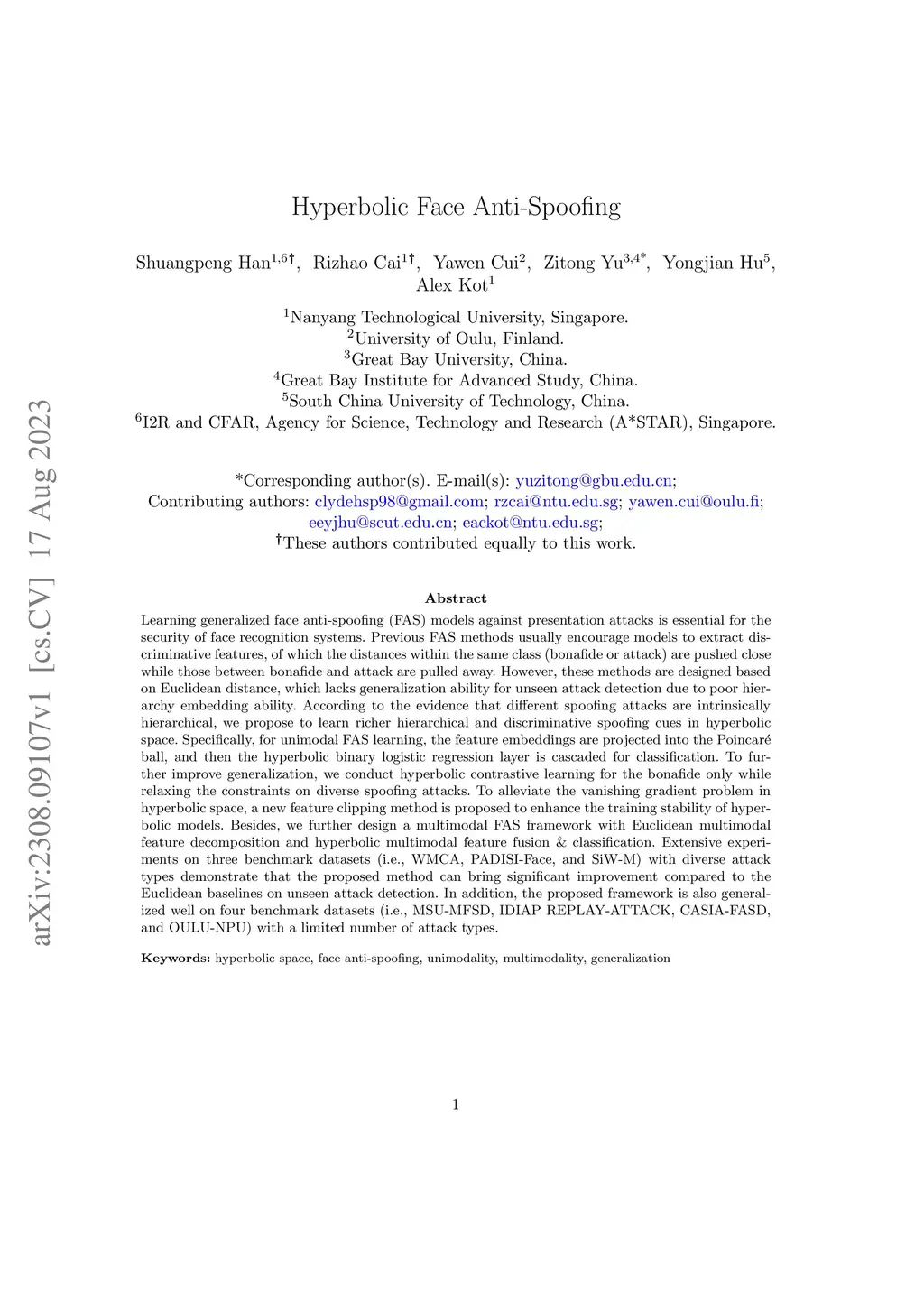 Learning generalized face anti-spoofing (FAS) models against presentation attacks is essential for the security of face recognition systems. Previous FAS methods usually encourage models to extract discriminative features, of which the distances within the same class (bonafide or attack) are pushed close while those between bonafide and attack are pulled away. However, these methods are designed based on Euclidean distance, which lacks generalization ability for unseen attack detection due to poor hierarchy embedding ability. According to the evidence that different spoofing attacks are intrinsically hierarchical, we propose to learn richer hierarchical and discriminative spoofing cues in hyperbolic space. Specifically, for unimodal FAS learning, the feature embeddings are projected into the Poincar\é ball, and then the hyperbolic binary logistic regression layer is cascaded for classification. To further improve generalization, we conduct hyperbolic contrastive learning for the bonafide only while relaxing the constraints on diverse spoofing attacks. To alleviate the vanishing gradient problem in hyperbolic space, a new feature clipping method is proposed to enhance the training stability of hyperbolic models. Besides, we further design a multimodal FAS framework with Euclidean multimodal feature decomposition and hyperbolic multimodal feature fusion & classification. Extensive experiments on three benchmark datasets (i.e., WMCA, PADISI-Face, and SiW-M) with diverse attack types demonstrate that the proposed method can bring significant improvement compared to the Euclidean baselines on unseen attack detection. In addition, the proposed framework is also generalized well on four benchmark datasets (i.e., MSU-MFSD, IDIAP REPLAY-ATTACK, CASIA-FASD, and OULU-NPU) with a limited number of attack types.