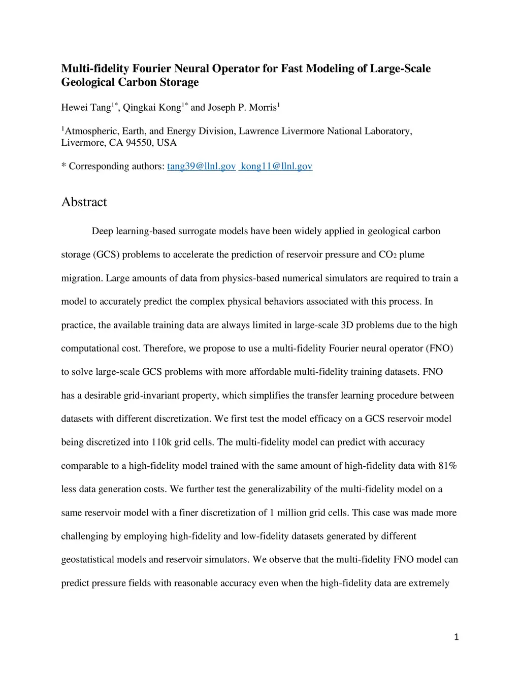 Multi-fidelity Fourier Neural Operator for Fast Modeling of Large-Scale