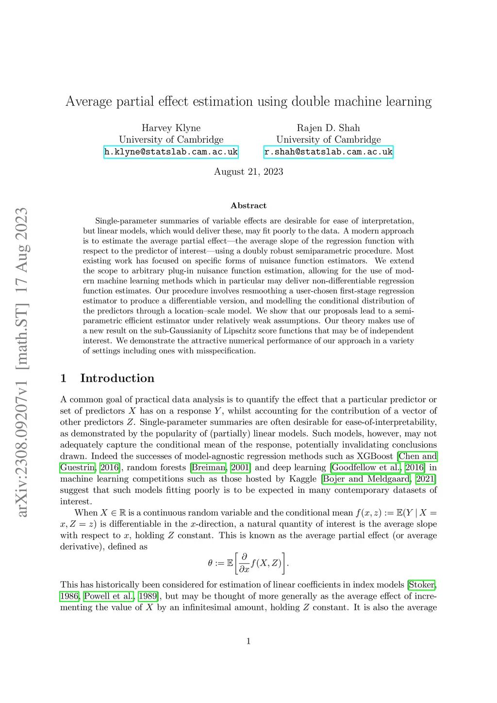 Single-parameter summaries of variable effects are desirable for ease of interpretation, but linear models, which would deliver these, may fit poorly to the data. A modern approach is to estimate the average partial effect -- the average slope of the regression function with respect to the predictor of interest -- using a doubly robust semiparametric procedure. Most existing work has focused on specific forms of nuisance function estimators. We extend the scope to arbitrary plug-in nuisance function estimation, allowing for the use of modern machine learning methods which in particular may deliver non-differentiable regression function estimates. Our procedure involves resmoothing a user-chosen first-stage regression estimator to produce a differentiable version, and modelling the conditional distribution of the predictors through a location-scale model. We show that our proposals lead to a semiparametric efficient estimator under relatively weak assumptions. Our theory makes use of a new result on the sub-Gaussianity of Lipschitz score functions that may be of independent interest. We demonstrate the attractive numerical performance of our approach in a variety of settings including ones with misspecification.