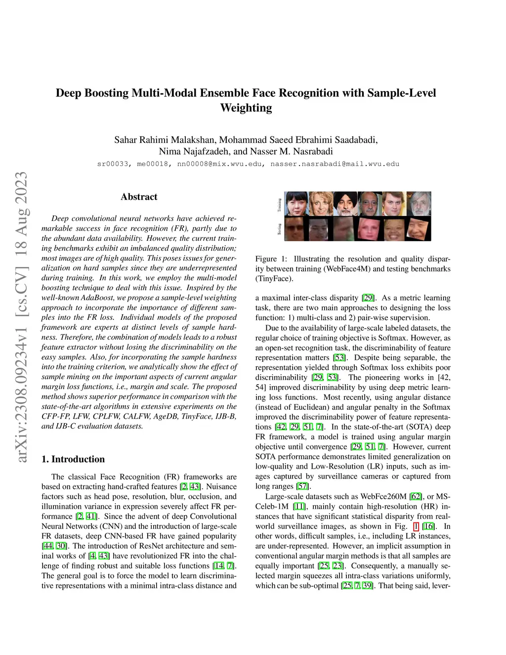 Deep convolutional neural networks have achieved remarkable success in face recognition (FR), partly due to the abundant data availability. However, the current training benchmarks exhibit an imbalanced quality distribution; most images are of high quality. This poses issues for generalization on hard samples since they are underrepresented during training. In this work, we employ the multi-model boosting technique to deal with this issue. Inspired by the well-known AdaBoost, we propose a sample-level weighting approach to incorporate the importance of different samples into the FR loss. Individual models of the proposed framework are experts at distinct levels of sample hardness. Therefore, the combination of models leads to a robust feature extractor without losing the discriminability on the easy samples. Also, for incorporating the sample hardness into the training criterion, we analytically show the effect of sample mining on the important aspects of current angular margin loss functions, i.e., margin and scale. The proposed method shows superior performance in comparison with the state-of-the-art algorithms in extensive experiments on the CFP-FP, LFW, CPLFW, CALFW, AgeDB, TinyFace, IJB-B, and IJB-C evaluation datasets.