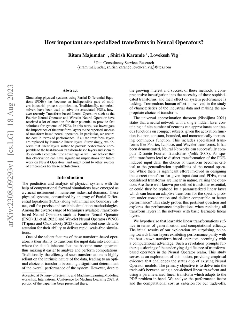 Simulating physical systems using Partial Differential Equations (PDEs) has become an indispensible part of modern industrial process optimization. Traditionally, numerical solvers have been used to solve the associated PDEs, however recently Transform-based Neural Operators such as the Fourier Neural Operator and Wavelet Neural Operator have received a lot of attention for their potential to provide fast solutions for systems of PDEs. In this work, we investigate the importance of the transform layers to the reported success of transform based neural operators. In particular, we record the cost in terms of performance, if all the transform layers are replaced by learnable linear layers. Surprisingly, we observe that linear layers suffice to provide performance comparable to the best-known transform-based layers and seem to do so with a compute time advantage as well. We believe that this observation can have significant implications for future work on Neural Operators, and might point to other sources of efficiencies for these architectures.
