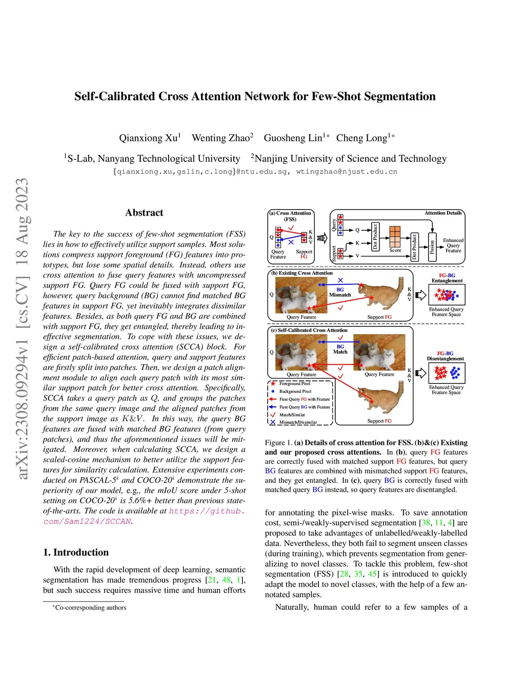 Self-Calibrated Cross Attention Network for Few-Shot Segmentation