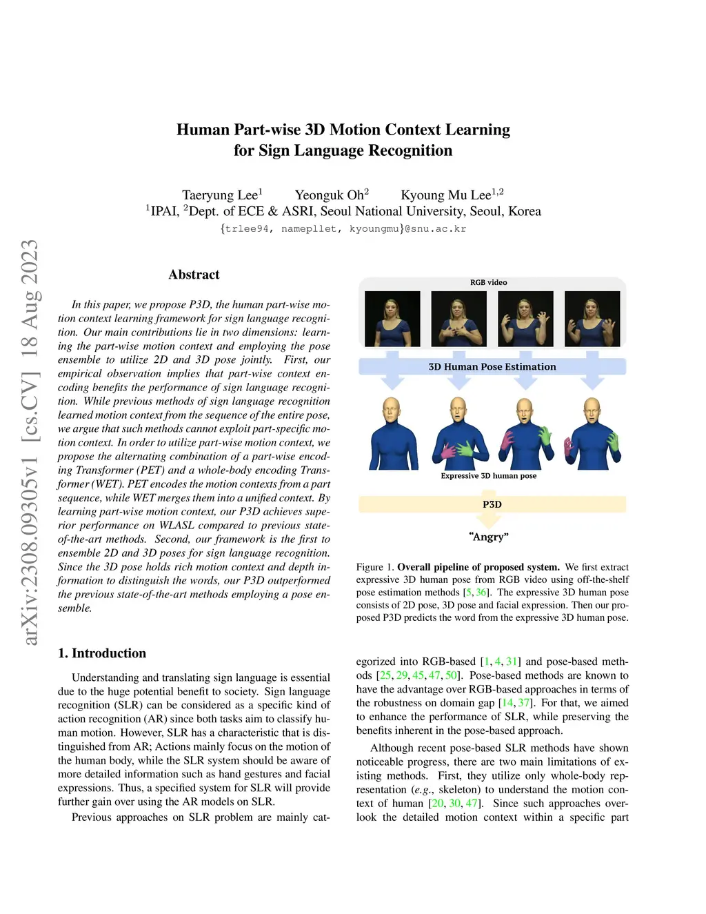 Human Part-wise 3D Motion Context Learning for Sign Language Recognition