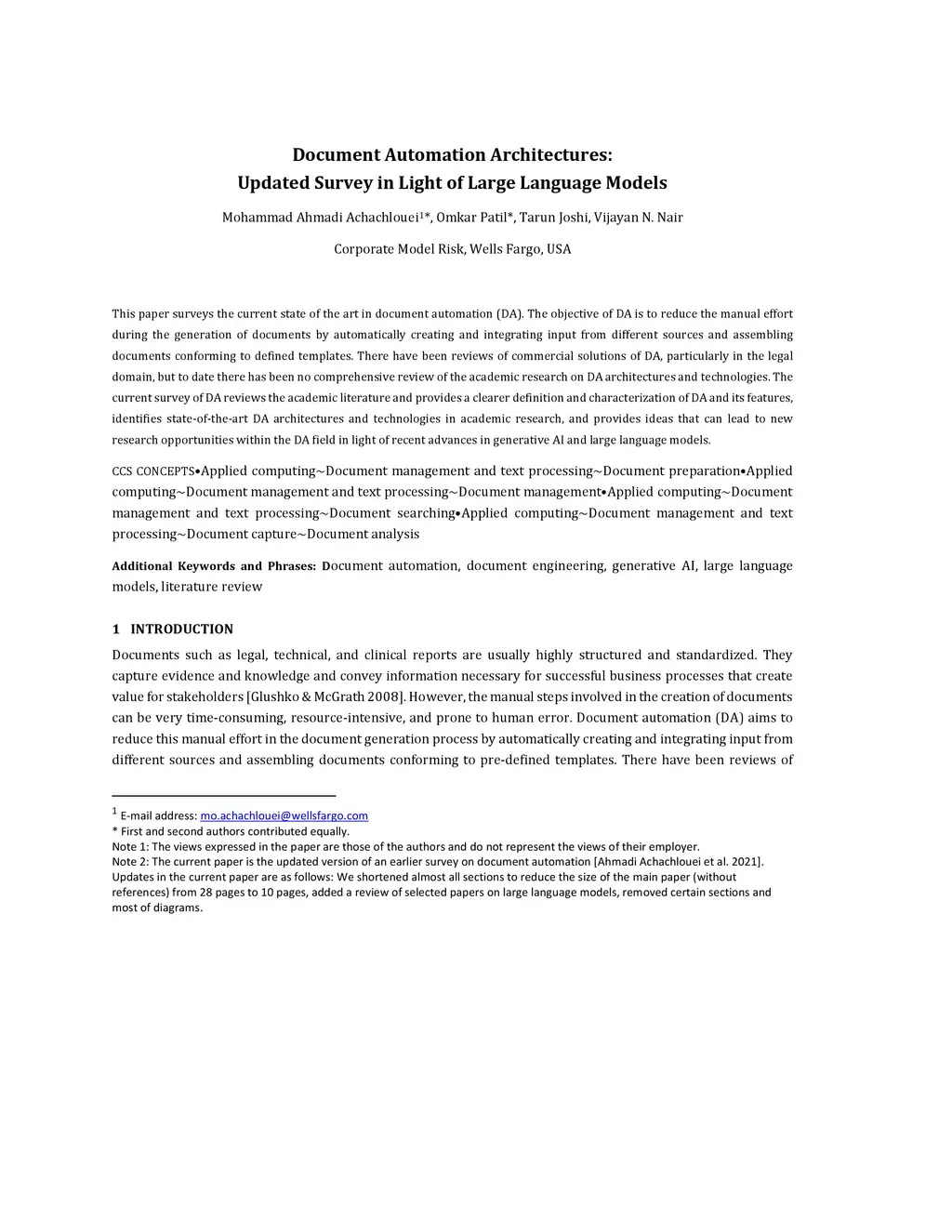 Document Automation Architectures: Updated Survey in Light of Large