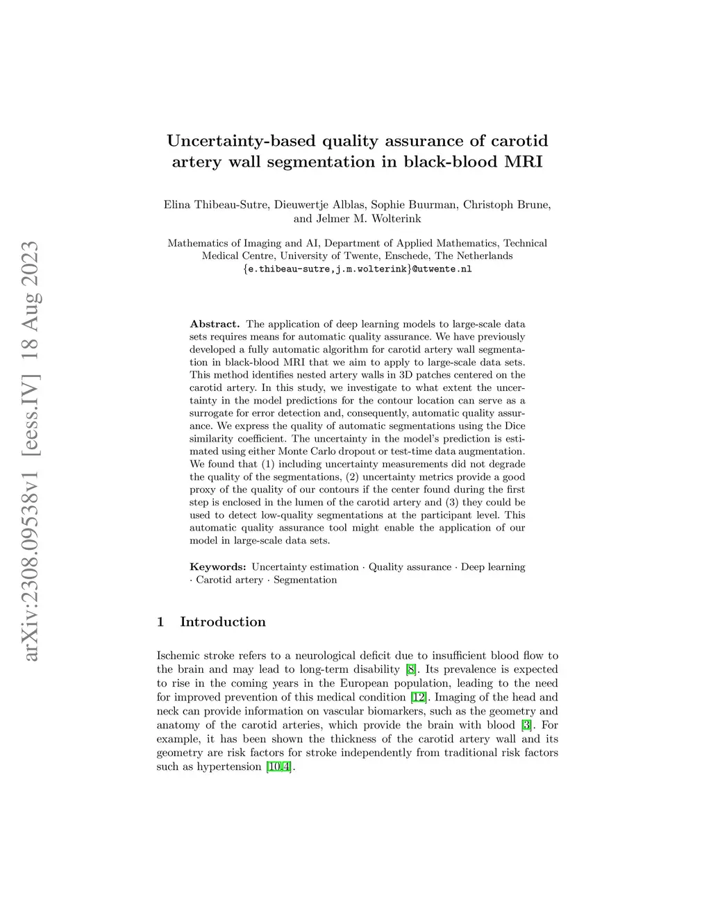 Uncertainty-based quality assurance of carotid artery wall segmentation