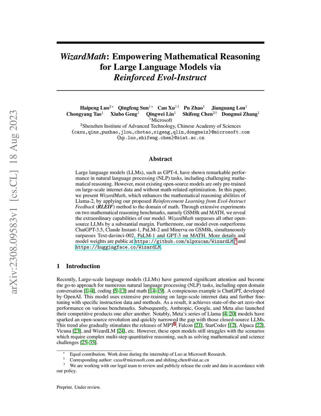 WizardMath: Empowering Mathematical Reasoning for Large Language Models via Reinforced Evol-Instruct