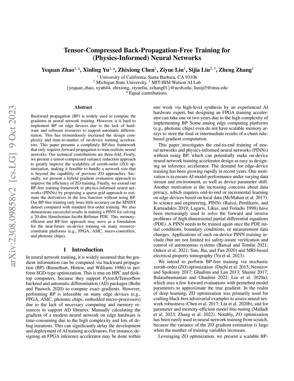 Tensor-Compressed Back-Propagation-Free Training for (Physics-Informed)