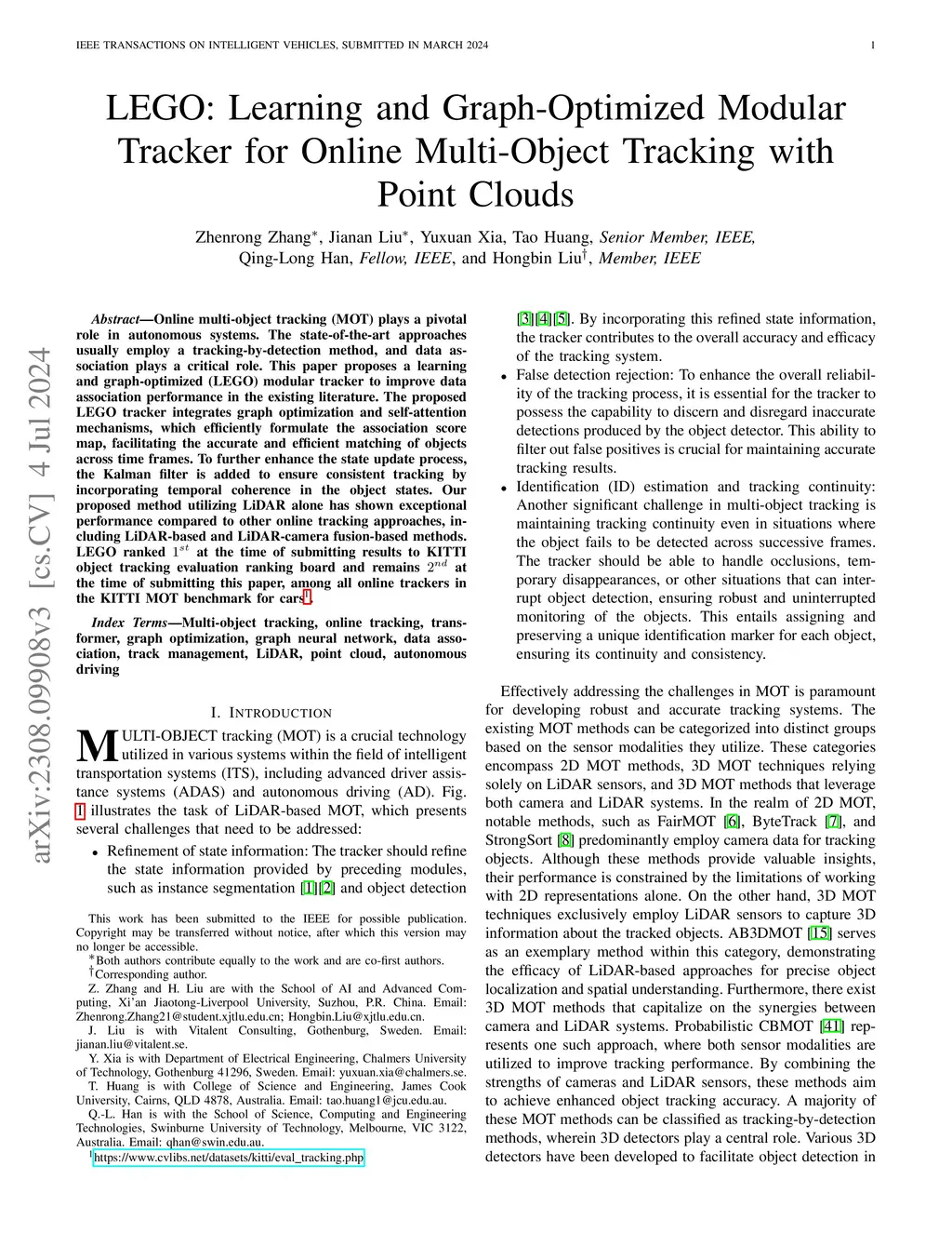 LEGO: Learning and Graph-Optimized Modular Tracker for Online Multi-Object Tracking with Point Clouds