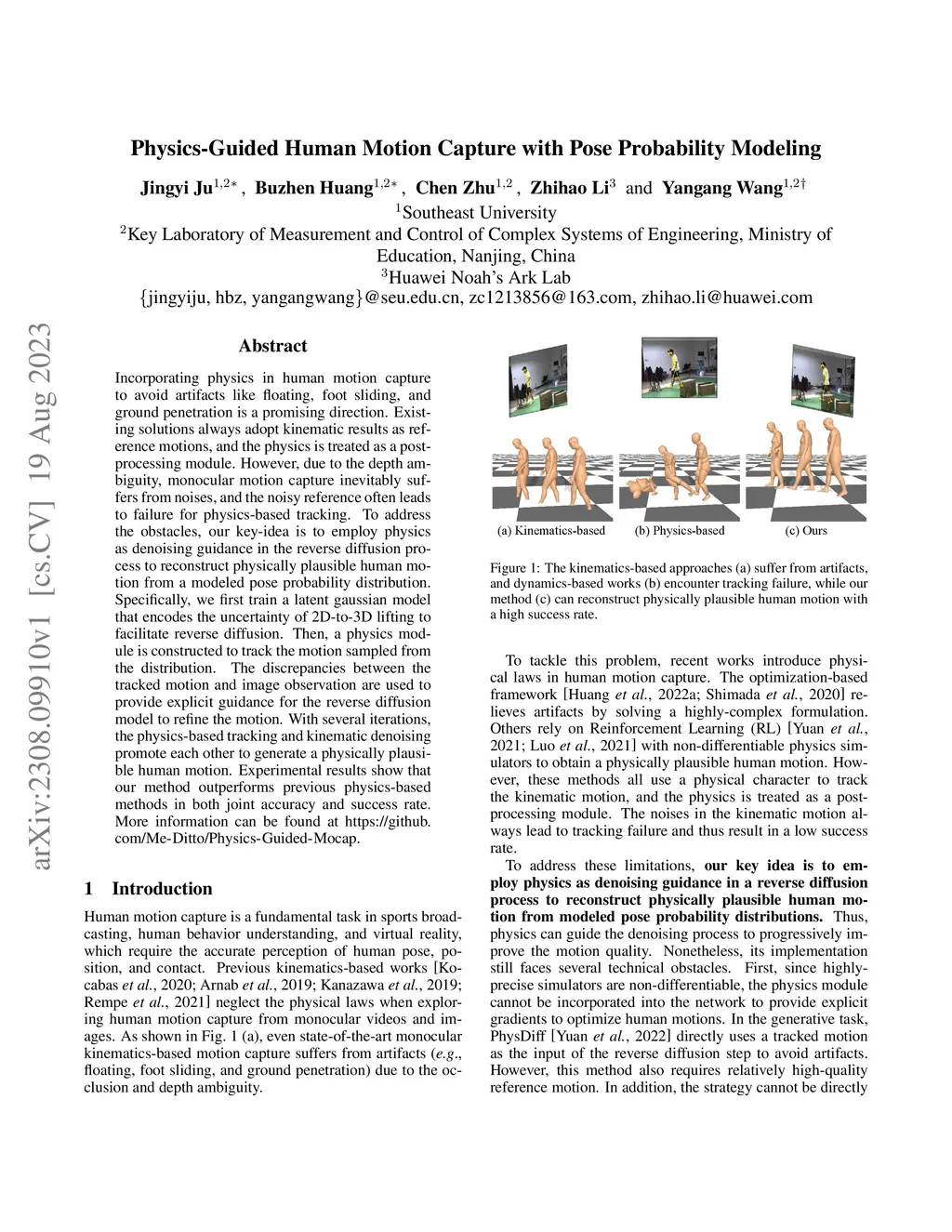 Physics-Guided Human Motion Capture with Pose Probability Modeling